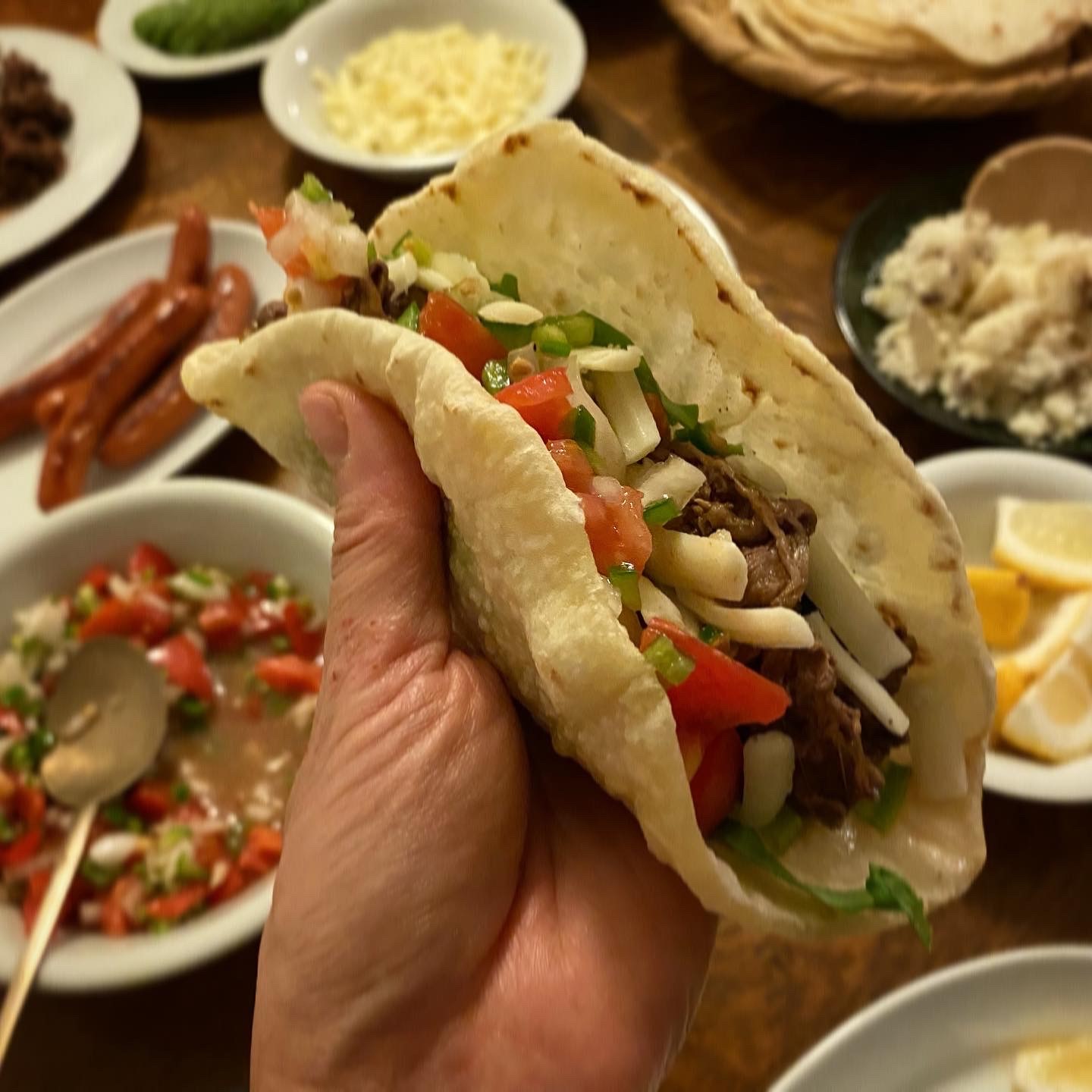 夏のような日差しに誘われたのかスパイシーな異国の味が恋しくなり、今夜はタコスナイト!トルティーヤも手作りしてみたら、めっちゃ美味しいじゃないの!!