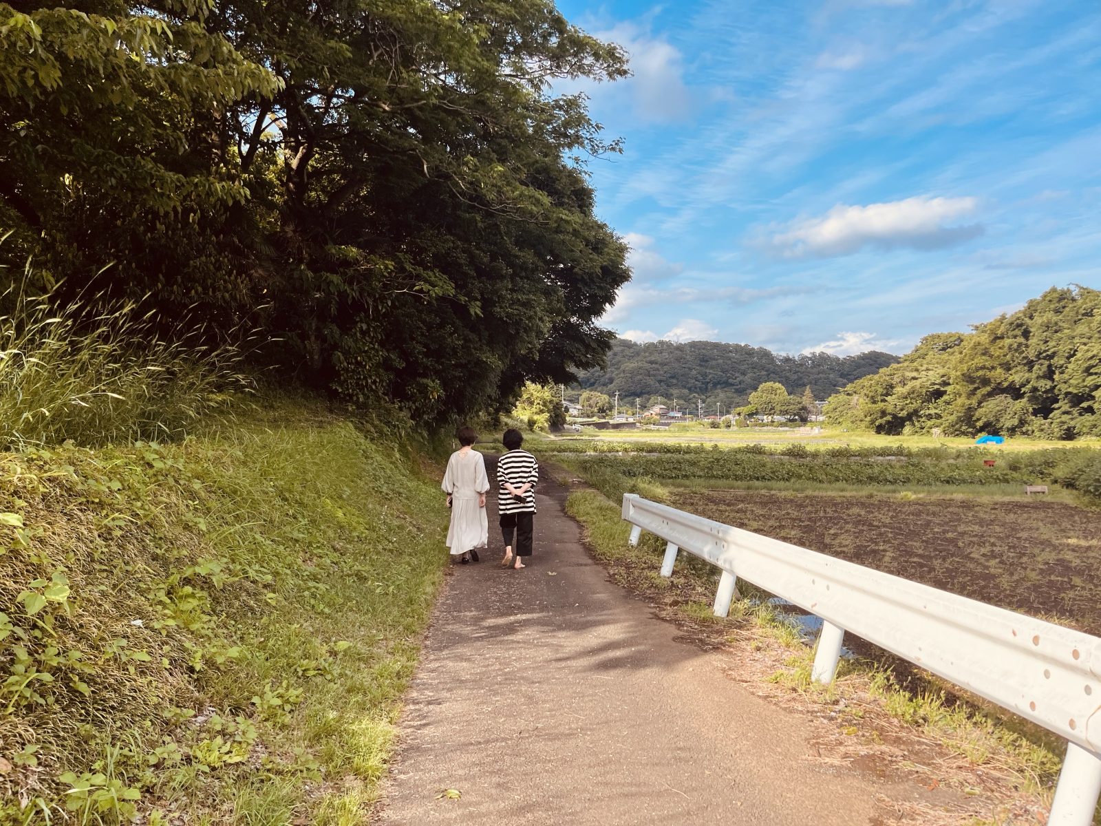 朝の雨が嘘のように晴れ渡った午後は、みんなでぐるっと周辺散歩に。