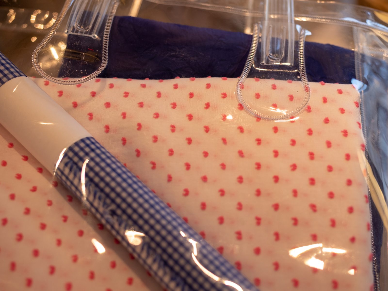 リネンと綿の混紡も気持ちが良さそうだし、柔らかいガーゼ地もいい。いくらでも見ていられる布たち。店内を離れられなくなりそうなので、最初に色味で惹かれたブルーの布とがんがん洗濯してもずっと肌触りのよさそうな白にピンクの刺繍のドットが入った布を選ぶ。白にピンクのドットの生地は丸襟のブラウスがいいかな。