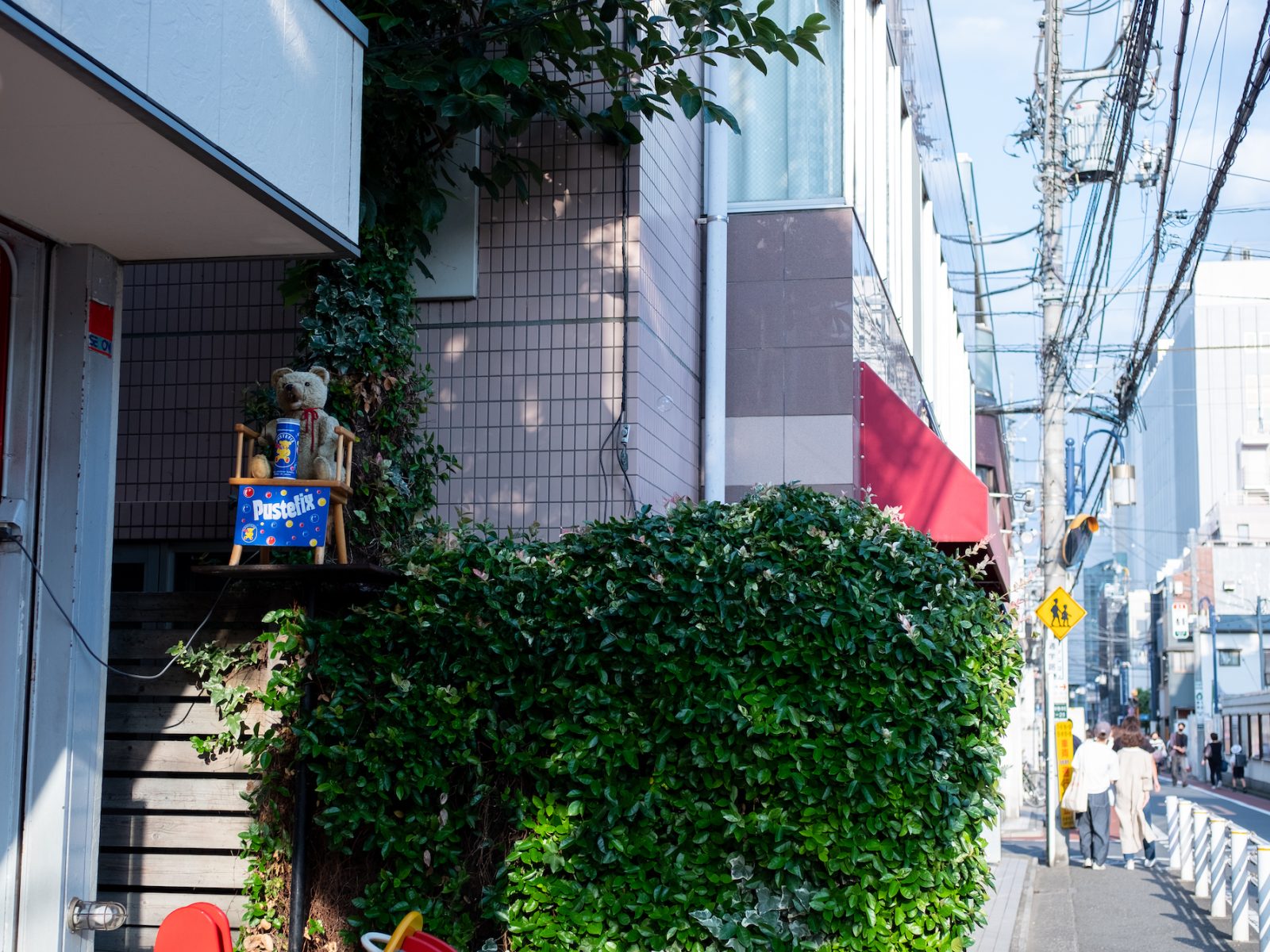 ヨーロッパの玩具を売るお店「ニキティキ」も子供の頃からここにあるお店。目の前にふわっとシャボン玉が飛んできて振り返ると、くまの人形がシャボン玉をふいている。梅雨の合間の晴れの日のシャボン玉。自然と心がゆるむ。