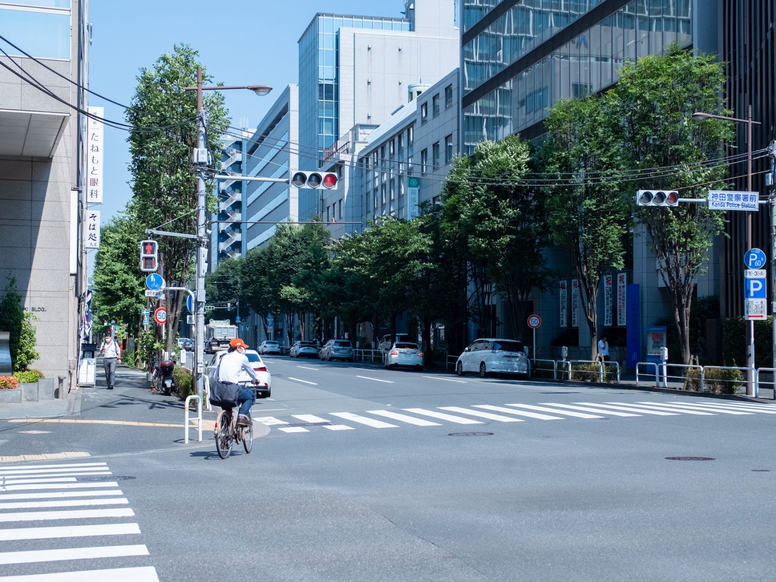 アイスコーヒーのカップから落ちる水滴が、じゅっと一瞬で乾いてしまうようなあっつ熱のアスファルトの上を足早に進み始めました。街路樹を射す光が白くてまぶしい。