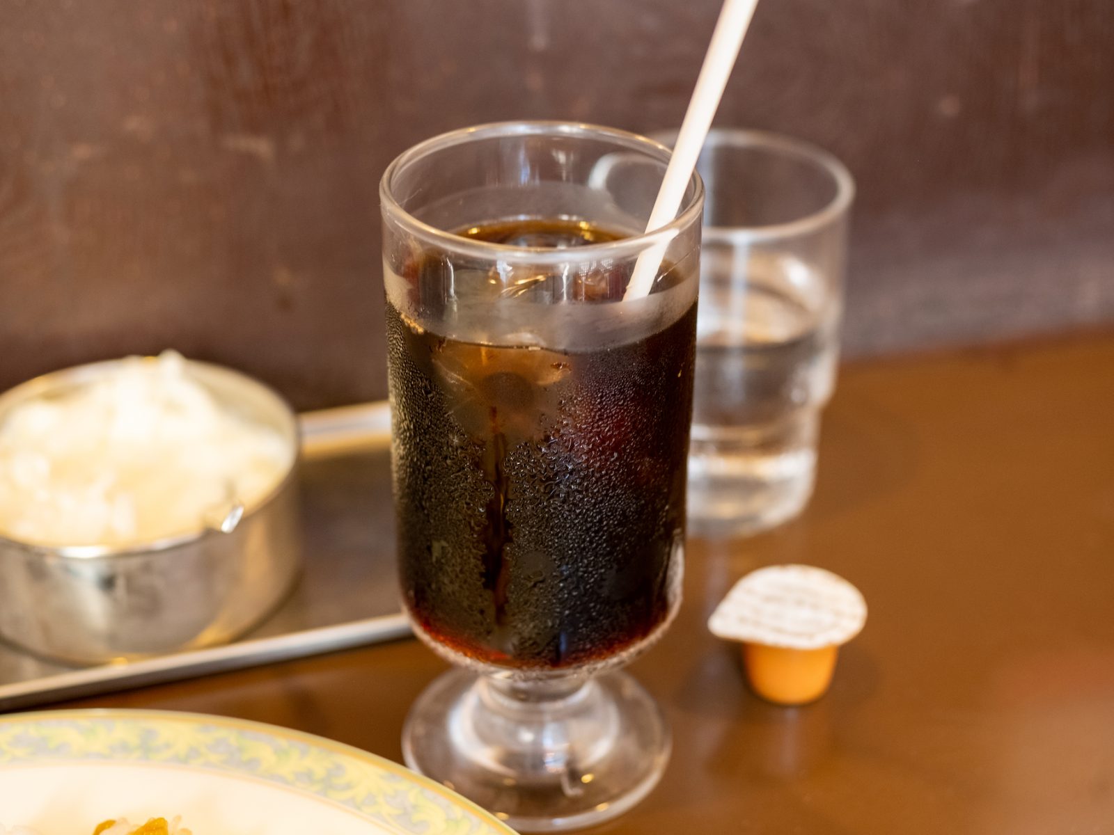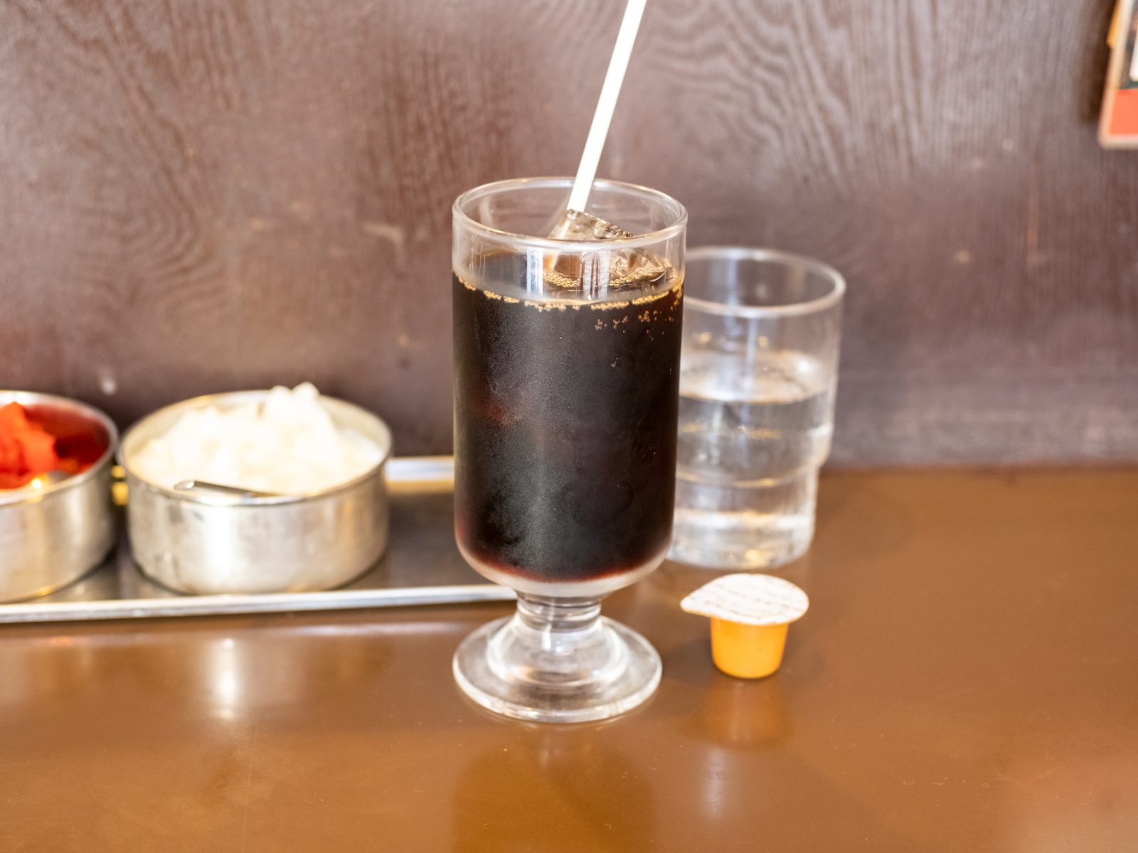 すぐに厨房に入ってアイスコーヒーを入れてくださる倉田さん。「はい、どうぞ。」カウンター越しにアイスコーヒーのグラスとコーヒーフレッシュを受け取る。シロップがないということは少し甘さのついたコーヒーなんだ。氷水ですでに潤してある喉にアイスコーヒーを流し込む。ほんのり甘い、疲れを吹き飛ばしてくれるコーヒー。