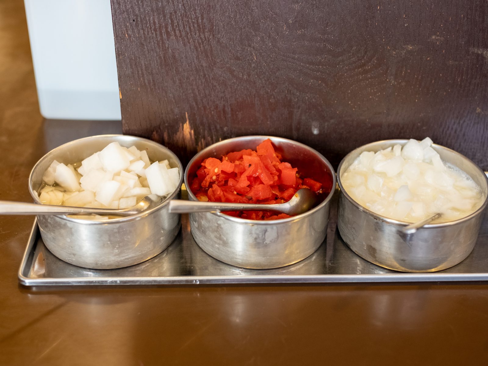 常連さんとお話中だった倉田さん。おしゃべりは続けながら、グラスに氷水を注いでくれる。ぐびぐびと冷たいお水を飲み干して、カレーを注文。しようと思ったのだけれど、メニューを見るとチキン、ビーフ、トマト、野菜。