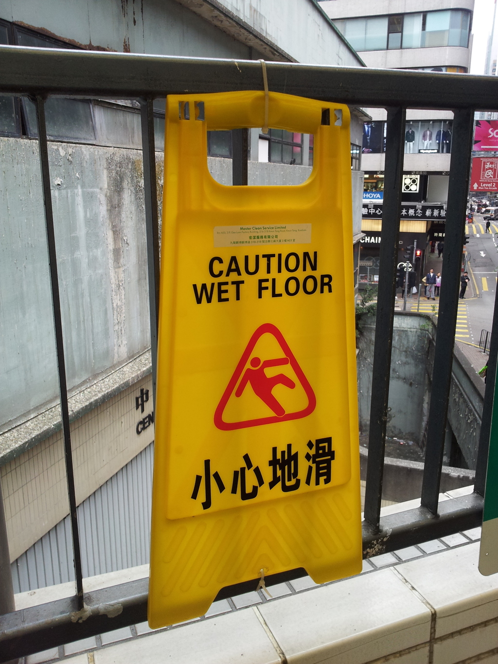 香港でよく地下鉄に置いてあった看板。「小心地滑」は地滑りでも何でもなく