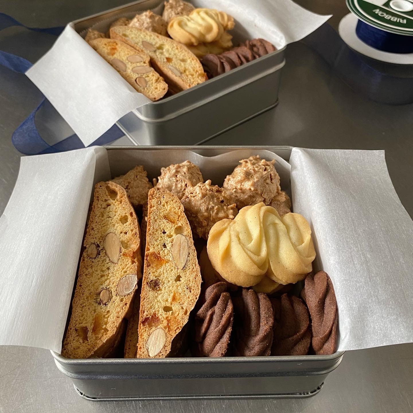 そういえば明日が母たちの誕生日(実母と義母の誕生日が偶然にも同じ日!)ということに気づいたものの、気の利いた贈り物が思いつかず…クッキー焼いて缶に詰めて、リボンを掛けたらいい感じ~