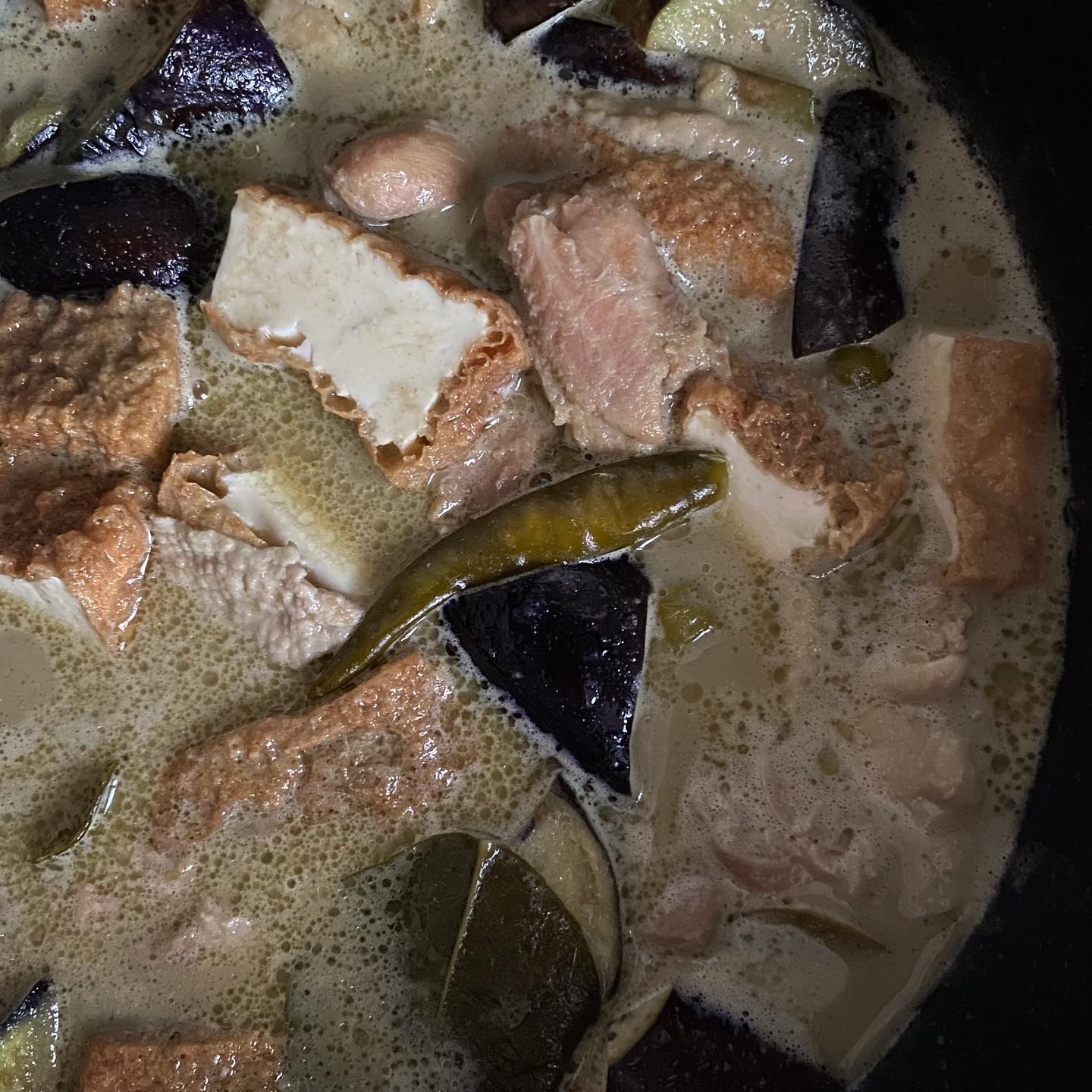 グリーンカレー、トマトと赤玉葱と胡瓜の甘酢漬け