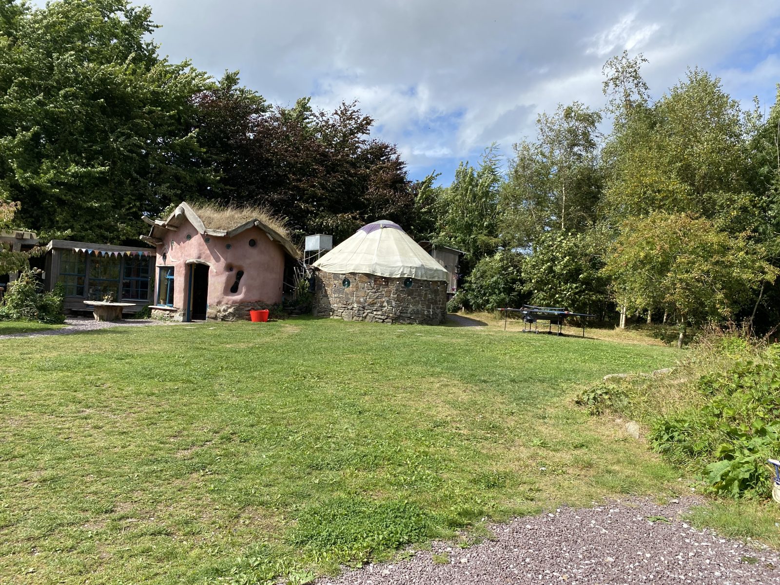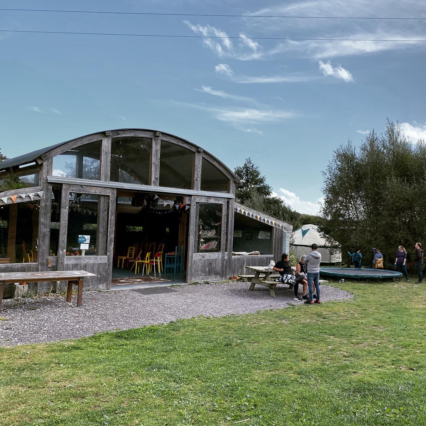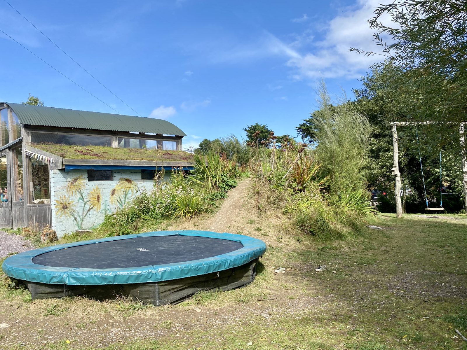 外にはトランポリンやブランコ、卓球台や焚き火エリア、畑も。