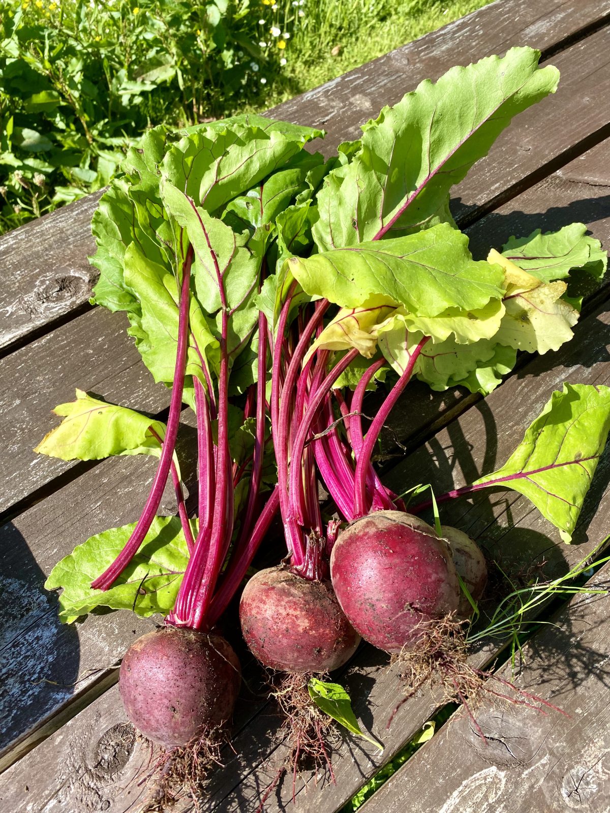 甘くて色が強烈なビーツ。切ると必ず手がビーツ色に染まります。