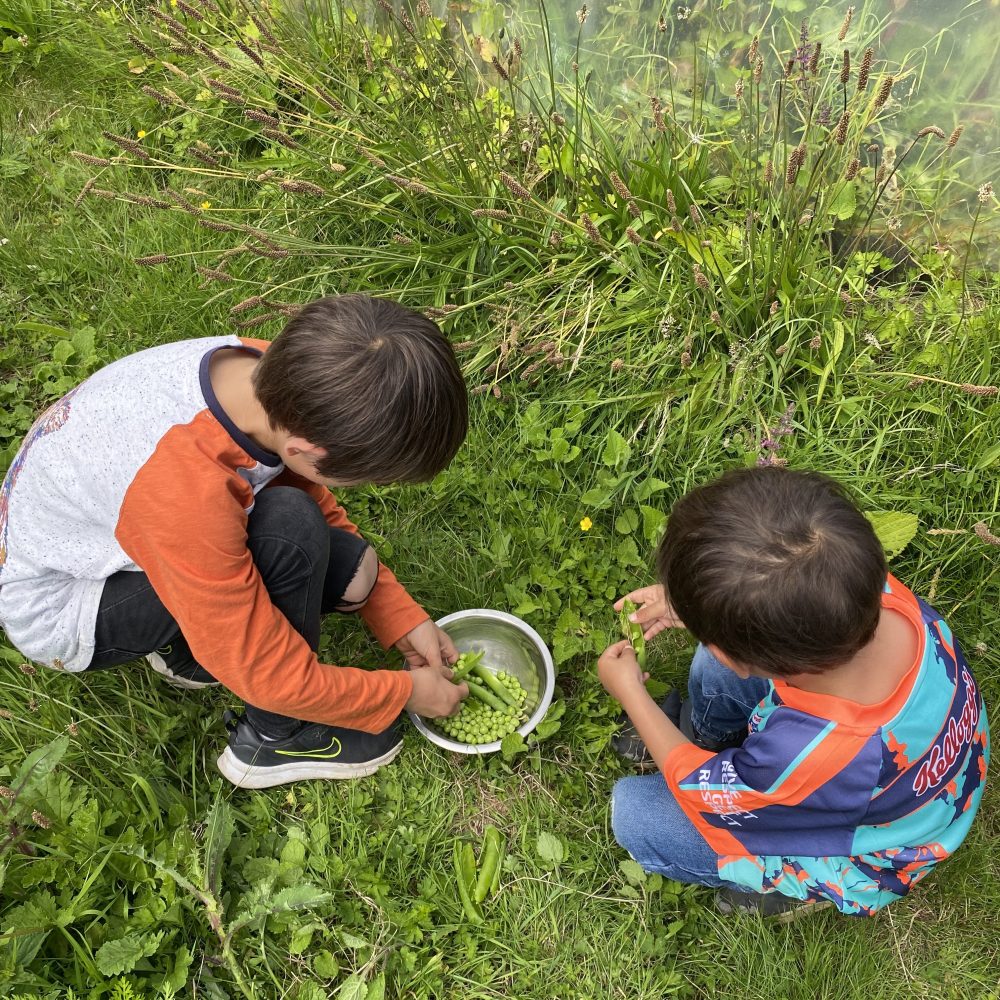 さらに成長したところでサヤを全て収穫し、グリーンピースを取り出す。