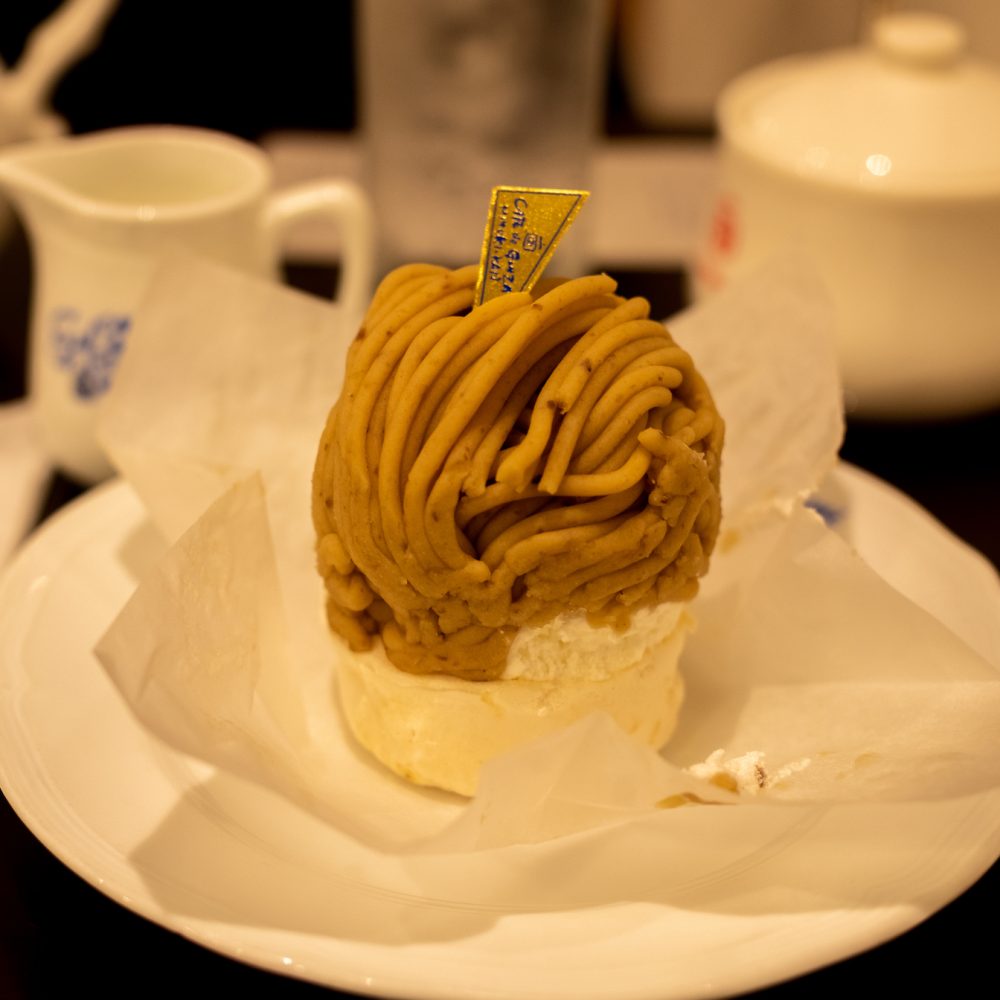 モンブラン。食べ始める前はいつもじっくり味わおうと思うのに、食べ始めるとどんどんフォークの速度があがって、ぺろりと食べ終えてしまう。どっしりした見た目と反する吸引力。コイケ吸引器のモンブランたち。