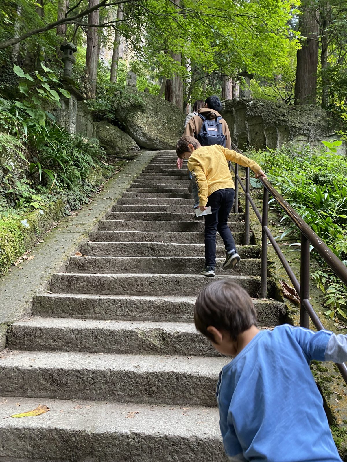 頂上近くのお土産屋さんや、おそらく住職さんの住まいに男児達は驚愕。