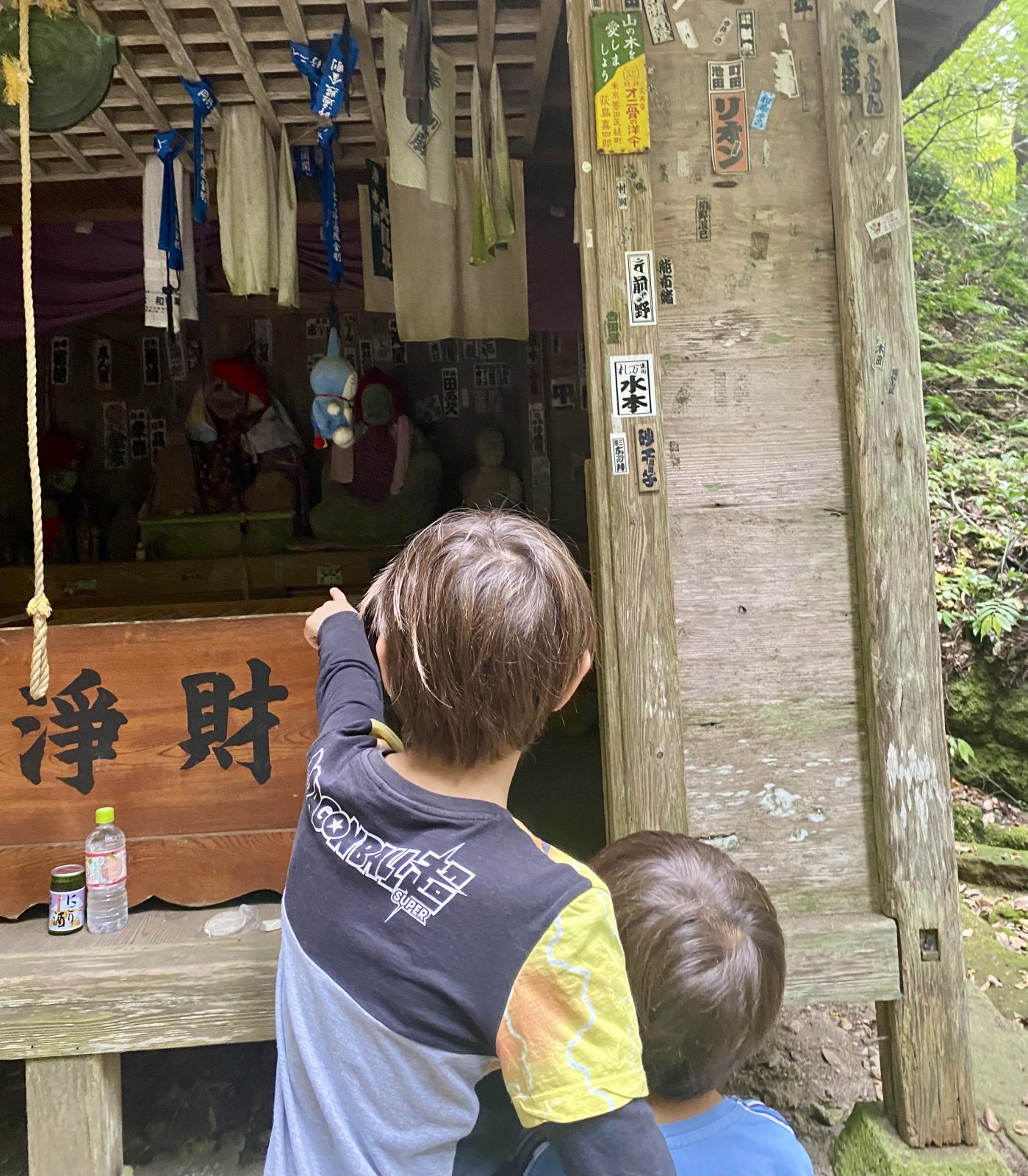 途中、ところどころにある祠やお地蔵様に供えてある小銭に触ってはいけませんよ、小銭を取ってはいけませんよ、などというマナーを教えながら、歩を進める。