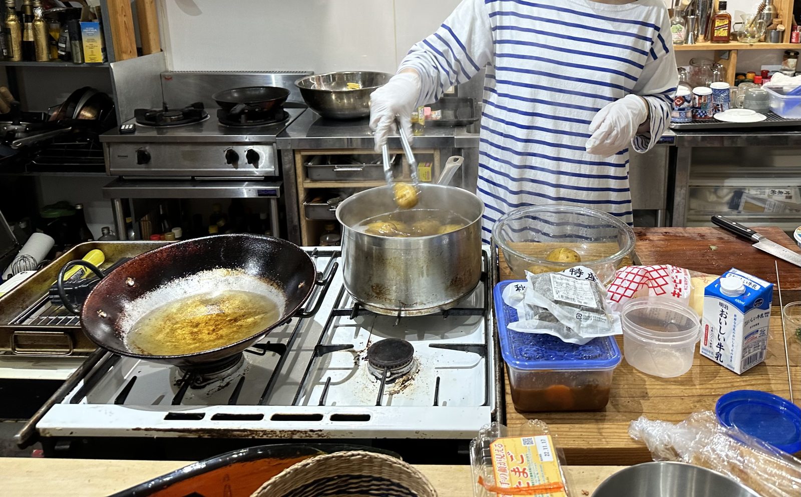 ポテサラ、マカロニサラダ、を前日に大量に仕込み、当日はフィッシュ&チップスを揚げ、