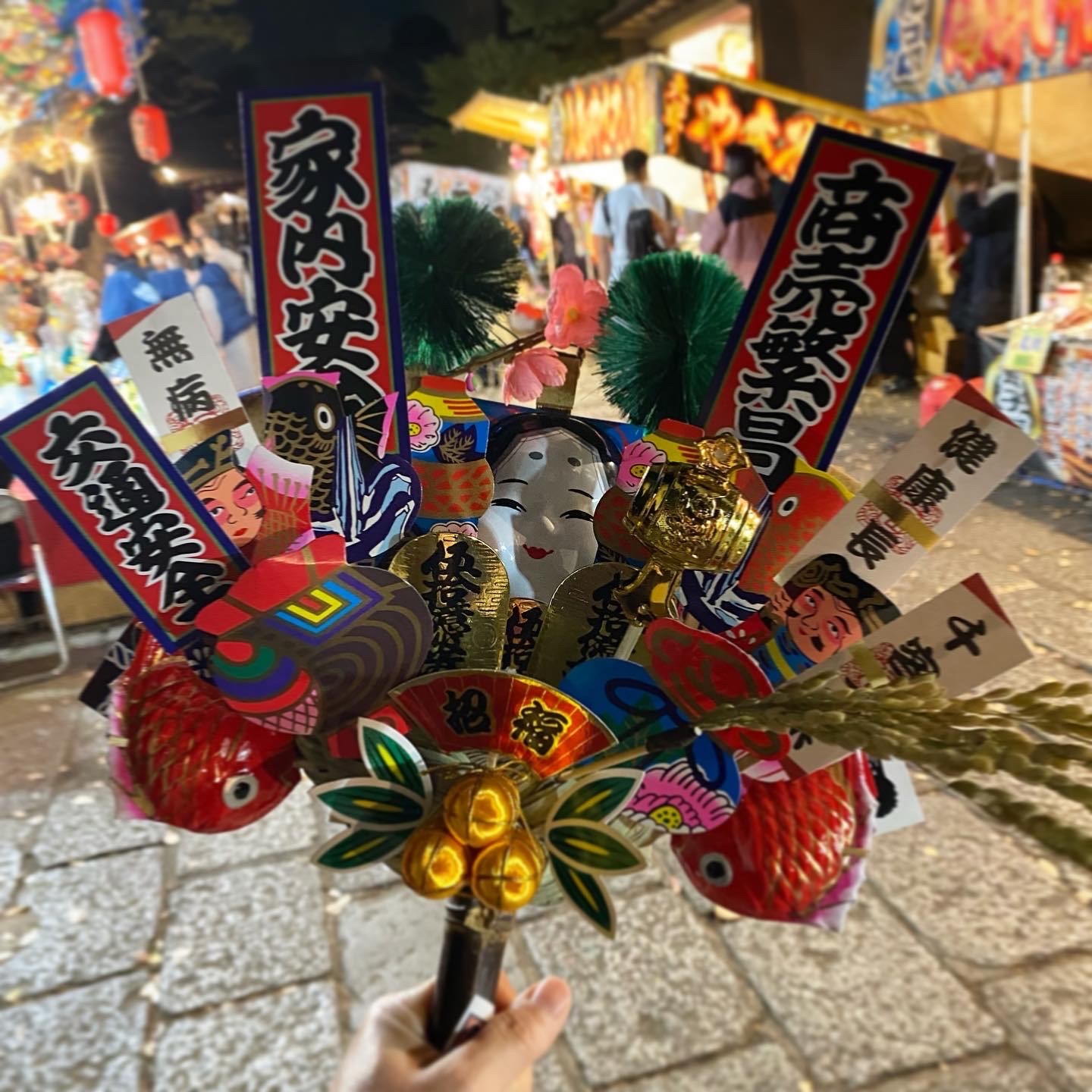 3人で賑わう屋台をひと通り冷やかして、お参りして、熊手選んで、手締めしてもらって。