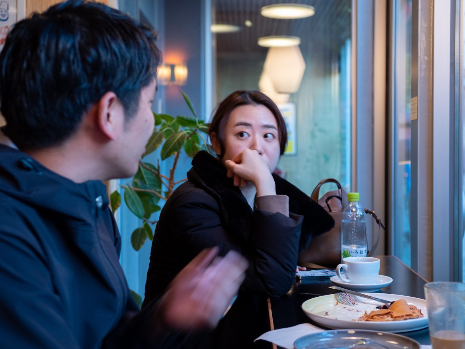 コーヒーを飲みながら、それぞれの仕事について話す二人。大学で建築やインテリアを勉強したあと、LINEで社内インテリアのデザインを担当していたナギョンちゃんは、ずっと好きだった器を仕事にすることになった。韓国や日本の同世代の作家さんたちを探して、自ら声をかけ器を制作してもらったり、買い付けをしてそれぞれの国に紹介する仕事をしている。ほぼ日で仕事をしたあと、大学の友人である瑶太くんと会社を立ち上げた順平さん。梅農家さんを回って、梅干しの加工会社さんと交渉して。梅干しを「おいしい」と同時に「楽しんでもらう形」に次々と変化させている。