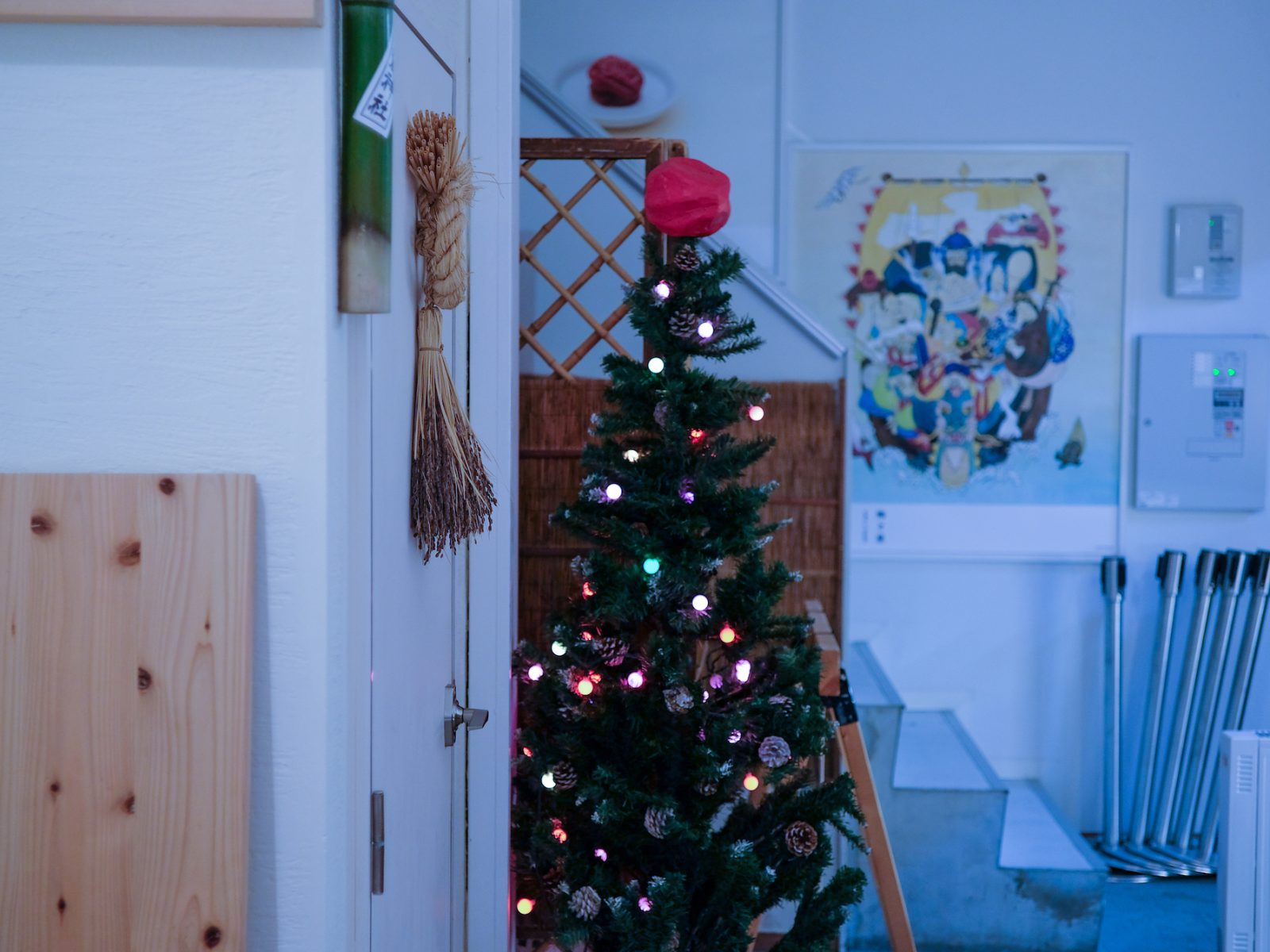 「梅と星」に戻ってクッキングクラスの準備を進めていると目に入ってきたクリスマスツリーには、星の代わりに梅干しが乗っている。もう来週の週末はクリスマスか!あと少しで今年も終わるね。