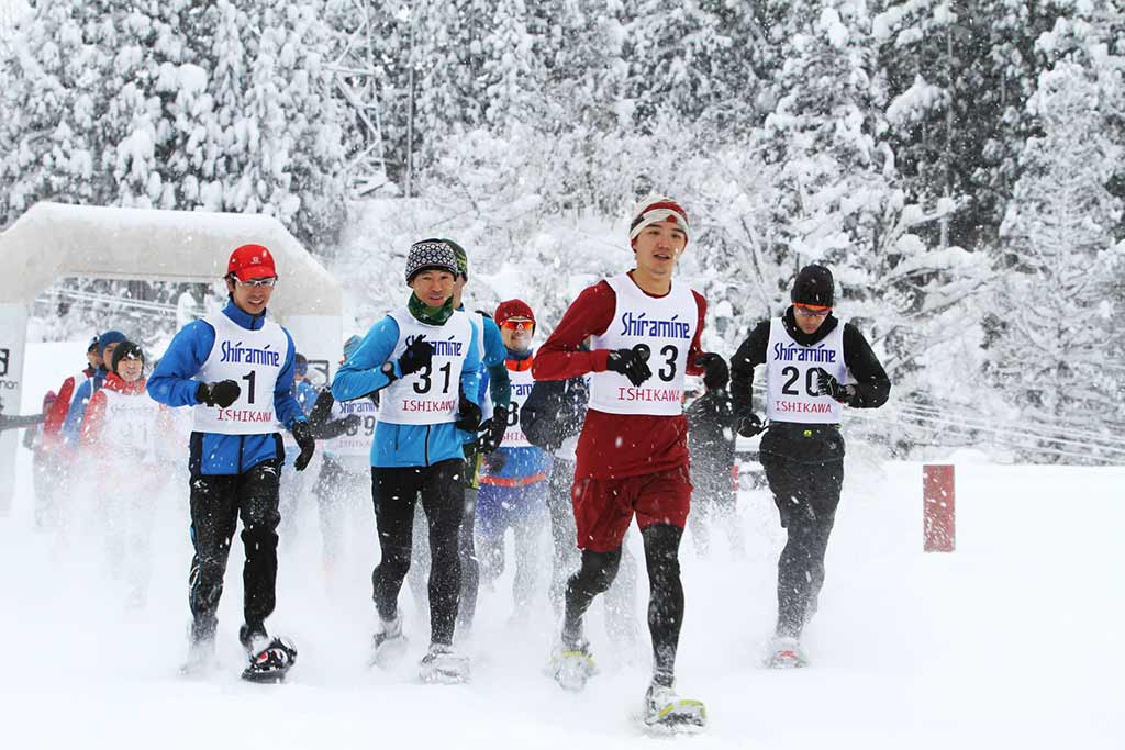 雪山を走るという酔狂な大会です。アルミ製のかんじき的なものがスノーシューで、ランニング用に設計されたモデルを付け、雪の上を15kmほどを走ります。