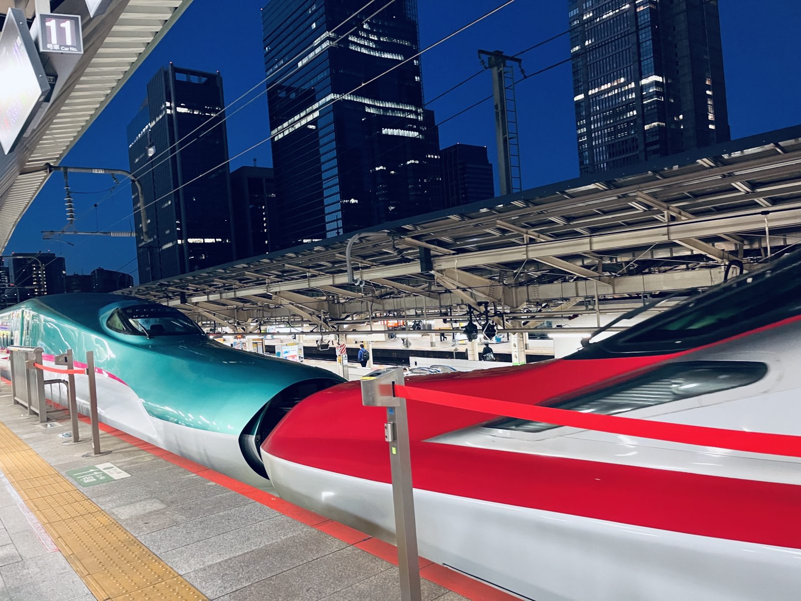 緑が函館までいく「はやぶさ」で、赤が秋田方面に行く「こまち」