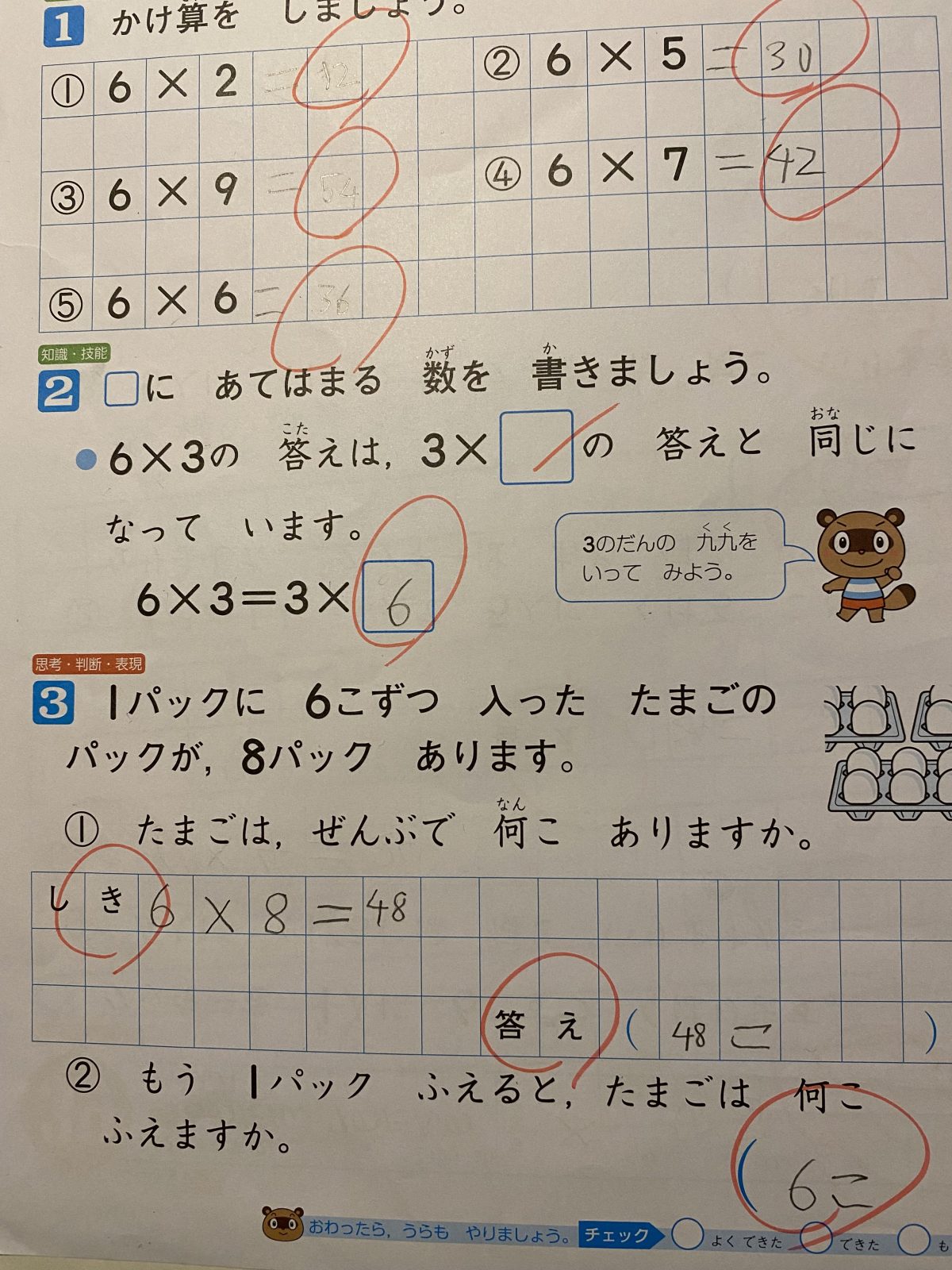 宿題は毎日漢字の練習、そして九九。毎日暗記を繰り返す。私の時もこれやったな。二年生の時の記憶が蘇る。