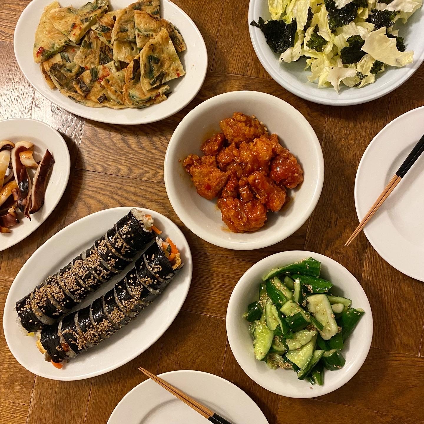 帰りにソウル市場に寄って夕飯を調達。簡単なサラダだけ作ってコリアンナイト!