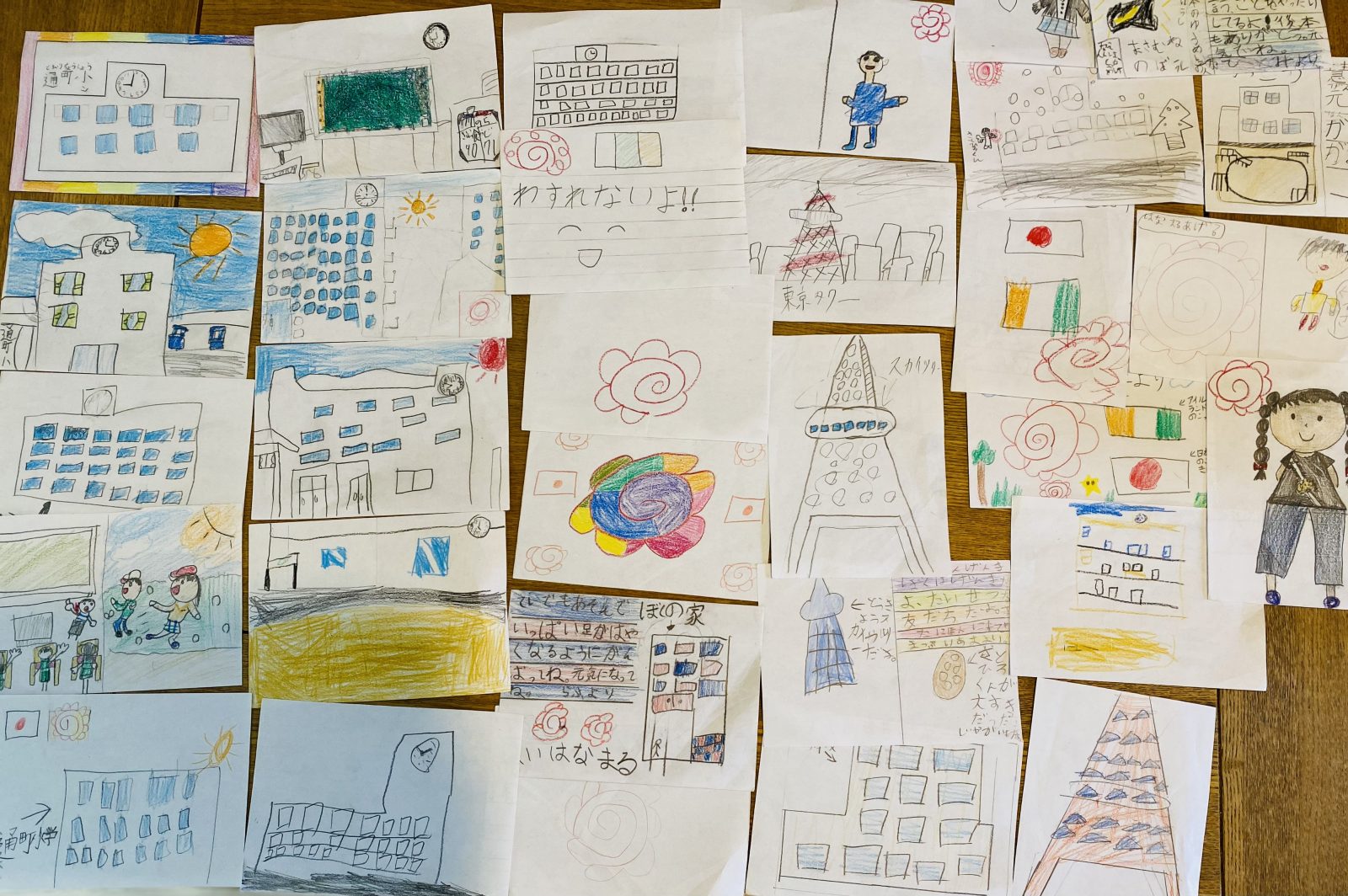 息子がアイルランドの家の絵を描いたからか、たくさんの子達が学校の絵を描いてくれたりはなまるを描いたり。