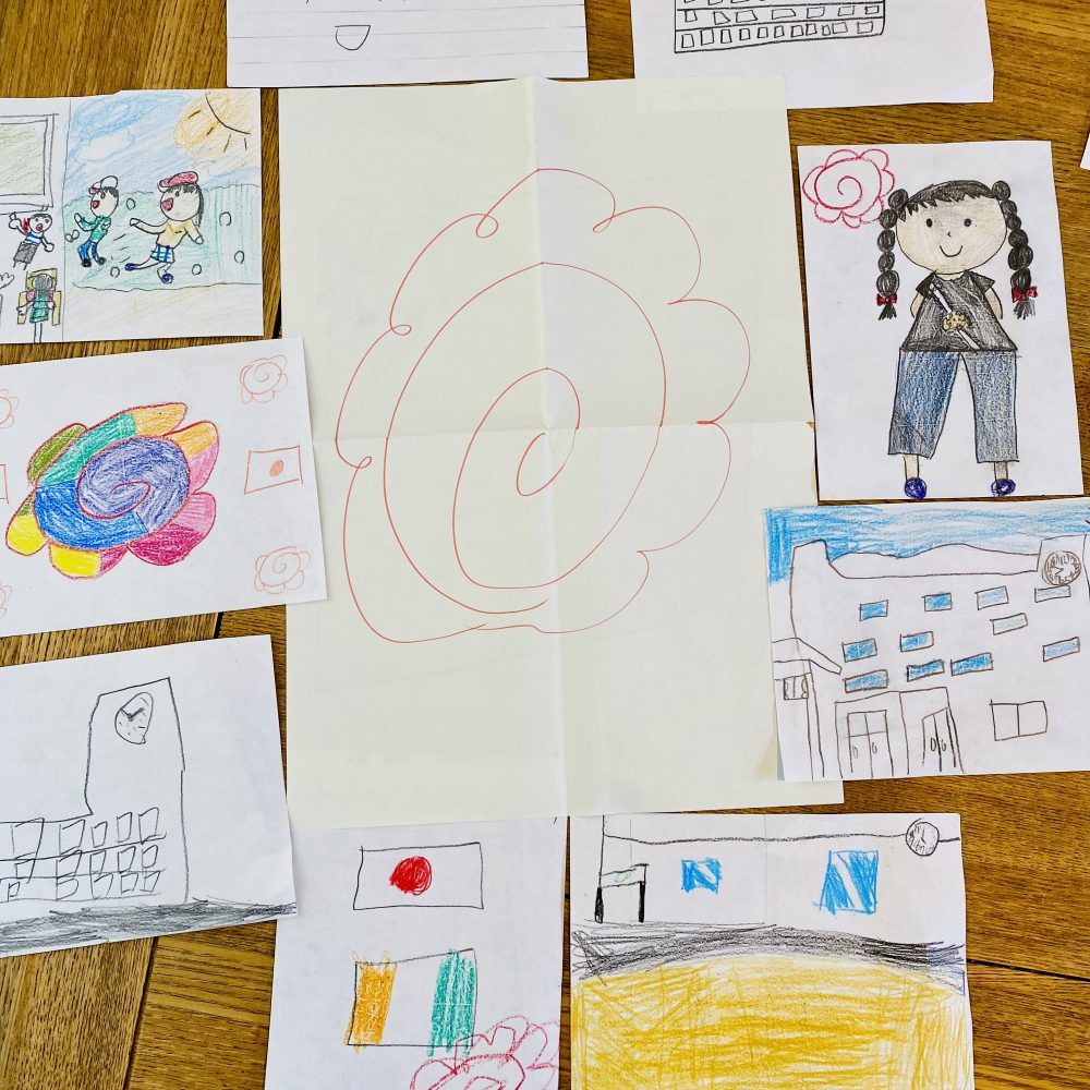 息子がアイルランドの家の絵を描いたからか、たくさんの子達が学校の絵を描いてくれたりはなまるを描いたり。