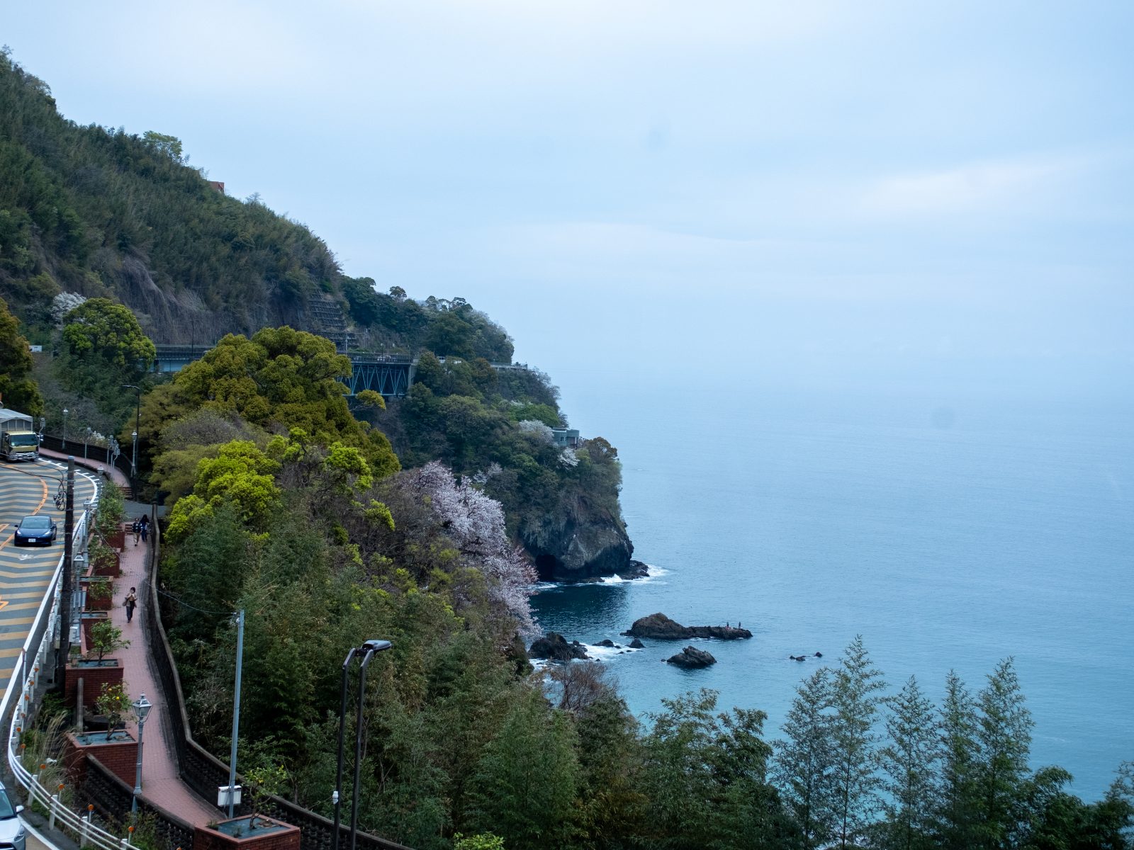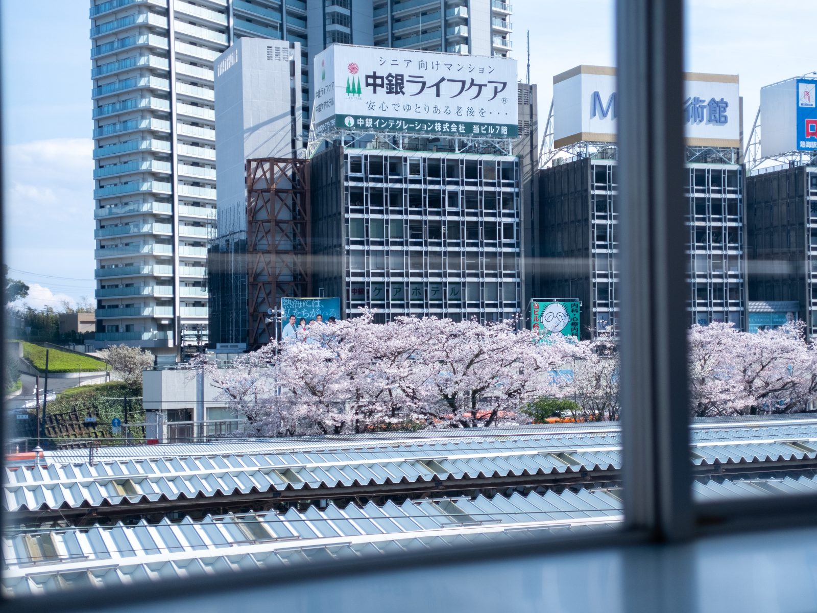 熱海はちょうどソメイヨシノが満開。新幹線を降りるとすぐ、右からも左からも桜の歓迎を受けます。平日なのに新幹線もほぼ満席。久しぶりに訪れた熱海は、活気に満ち溢れていました。