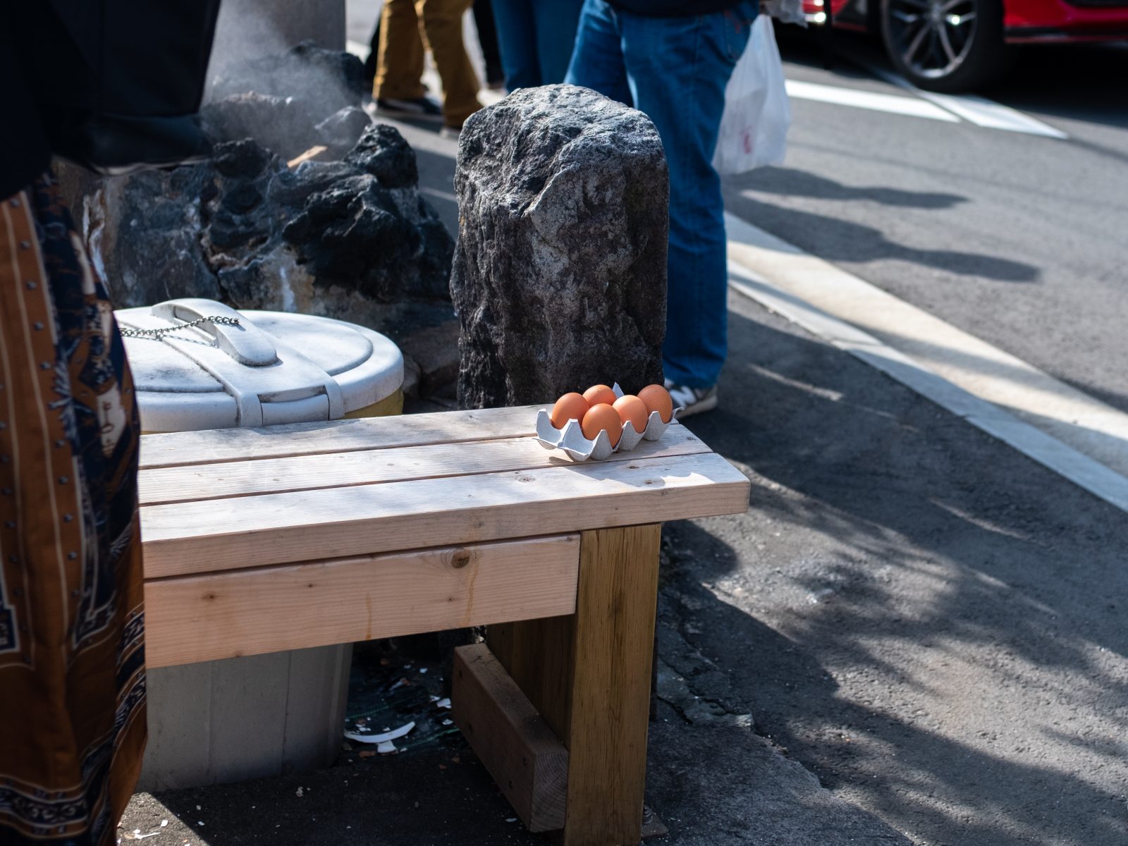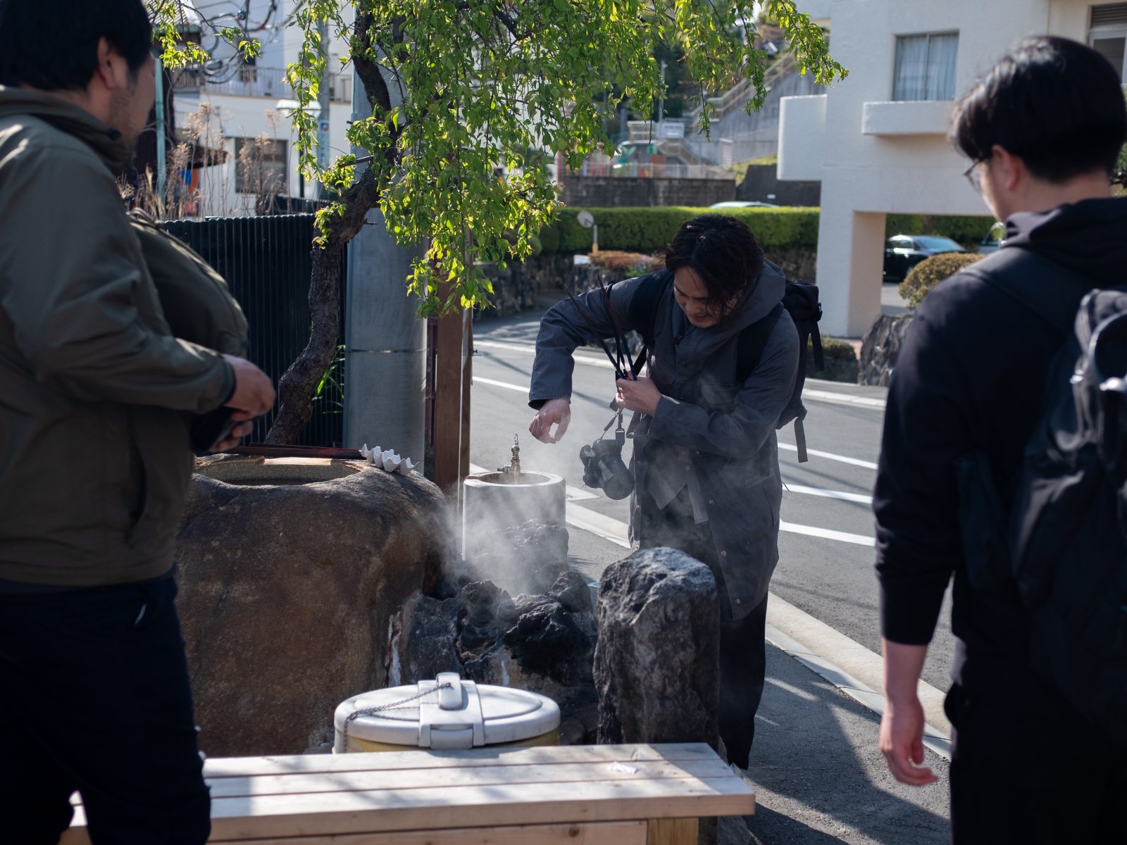 熱海は温泉の街。あちこちに源泉が湧き出している。ある源泉の向かいにある酒屋さんに入っていく山田。パックに入った卵を手にしています。勘の良い方はもうお分かりかもしれませんが、街中の源泉で蒸した卵を食べられるんです。