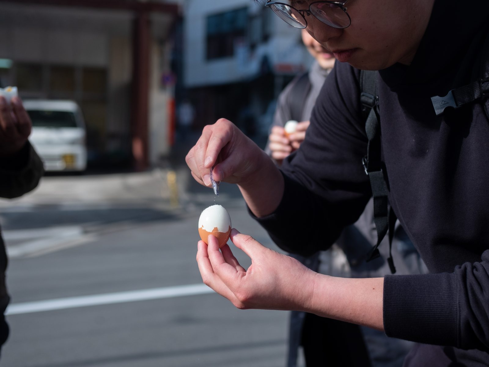 熱々の卵。熱いものが苦手な幡野さんは水で卵を冷やしてから殻を剥いています。