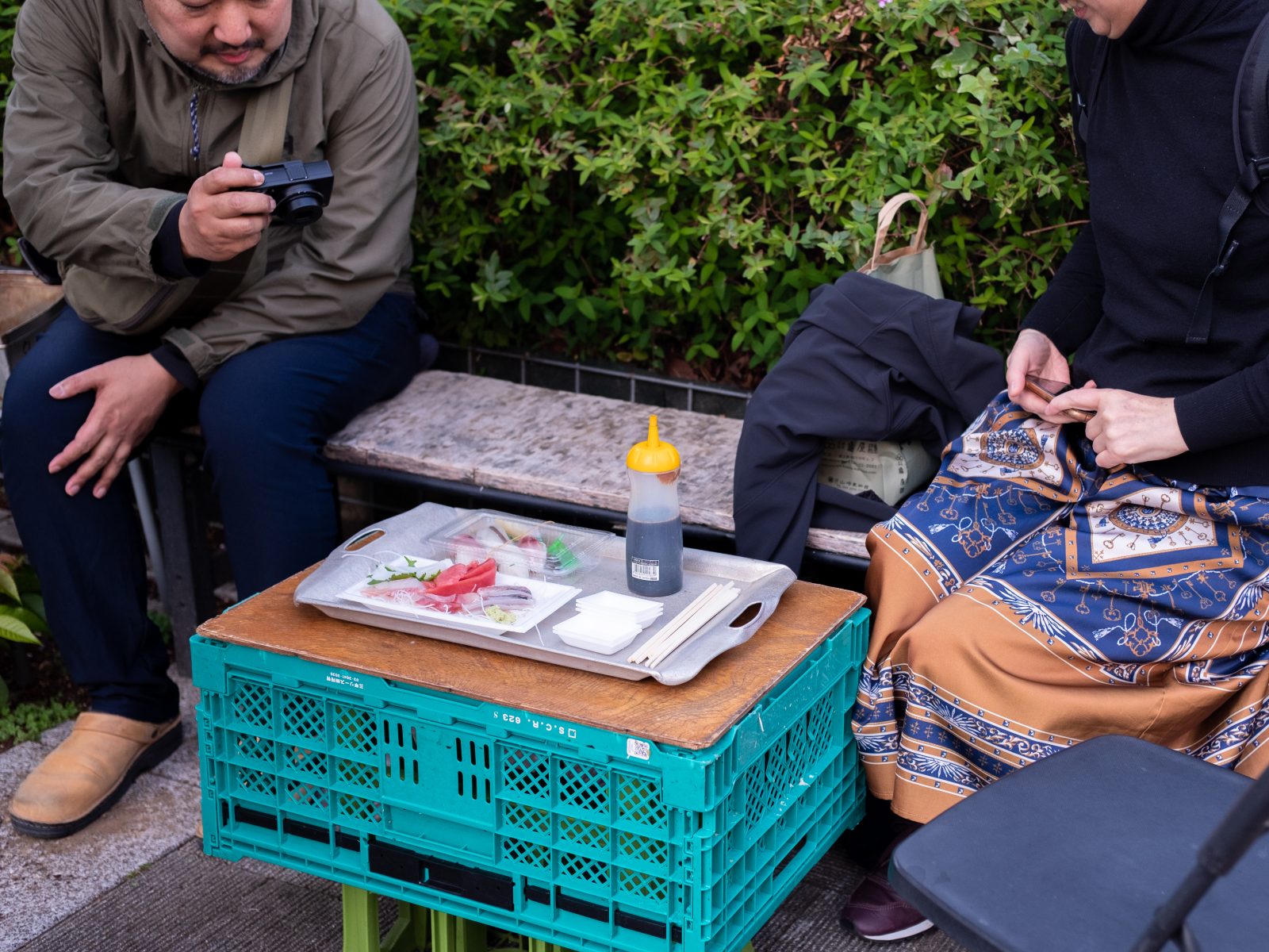 「ここにビールがあったら長居しちゃうね」おいしいお刺身とお寿司をつまんで、またお散歩。久しぶりのお天気の夕暮れ。ただ歩いているだけで、気分がよくなります。