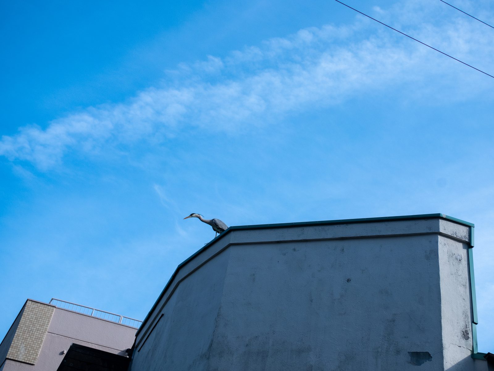 おいしいお刺身を頬張っていると大きなサイズのさぎが飛んでくる。