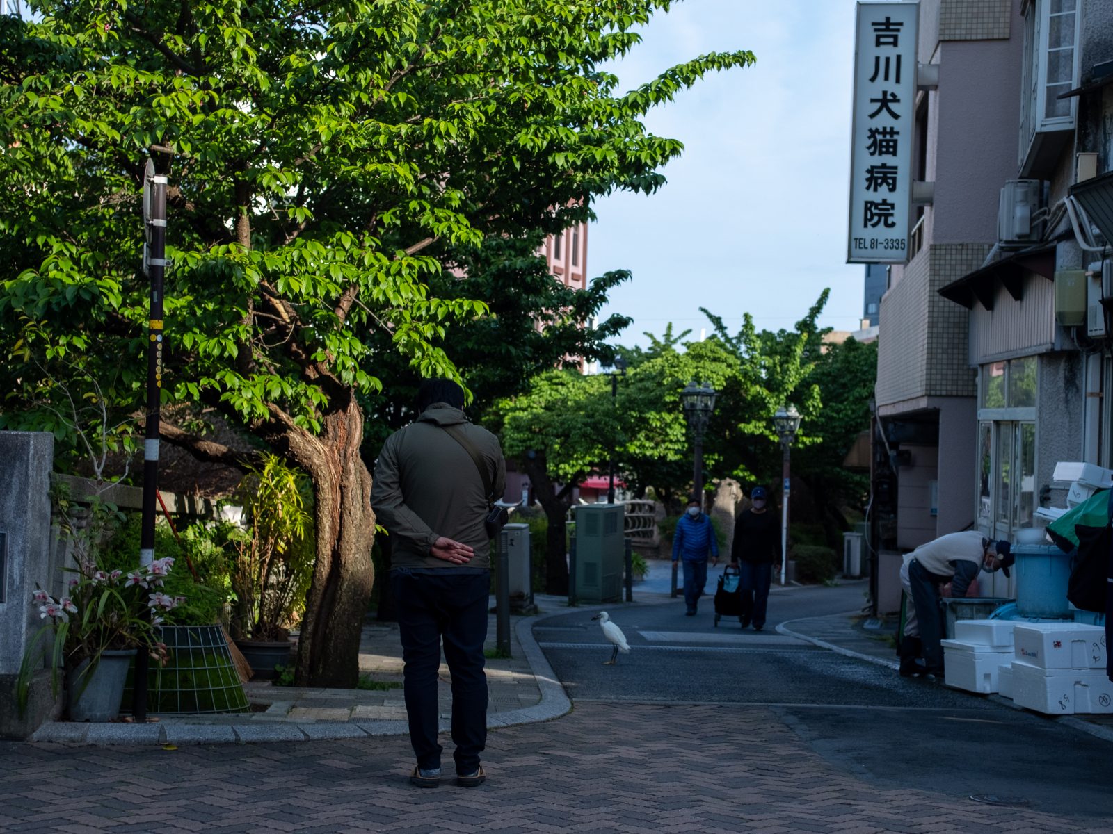 「どこまで寄れるかな」カメラを持って近づく幡野さん。ものすごい至近距離まで行っても、さぎは全く動じない様子。