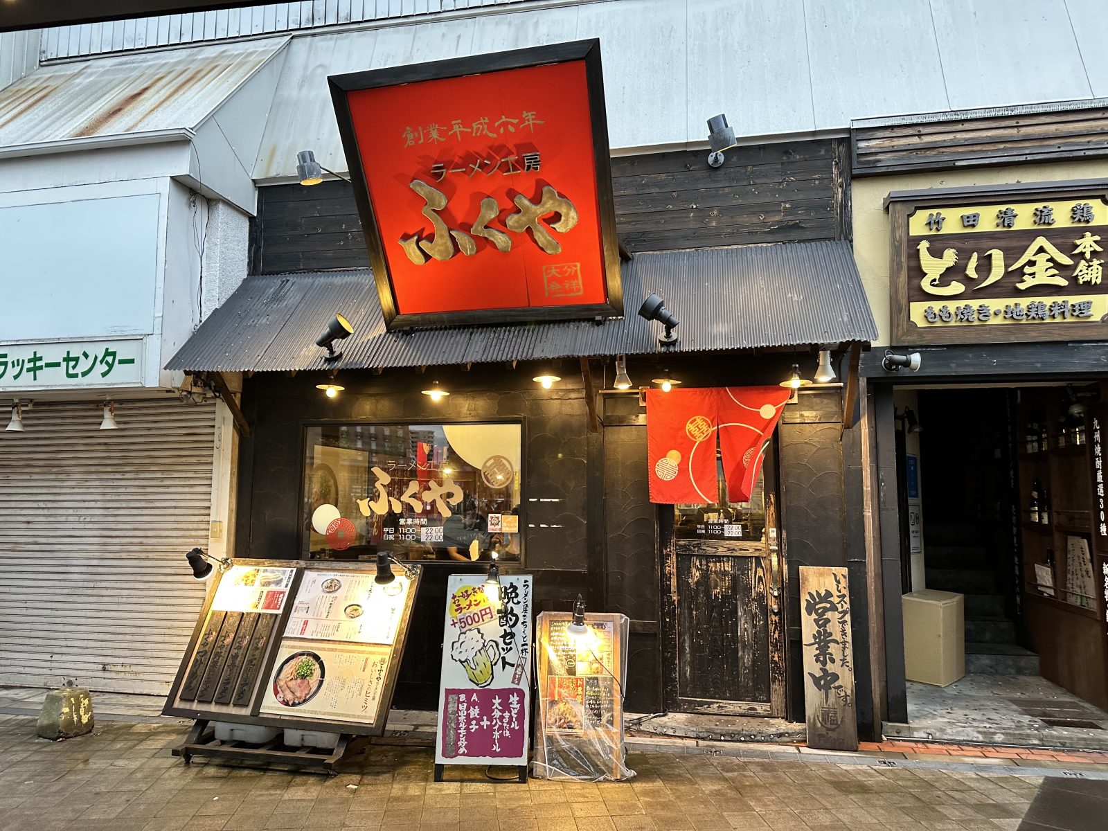 大分の街中でお酒を飲んだ人の4割がシメに使う(ムトーの個人的実感しらべ)ラーメン屋さんの前を通って近くのビルの地下にある焼き鳥やさんに向かう。あああああああああああ、、、、閉まってる。。。なんで??