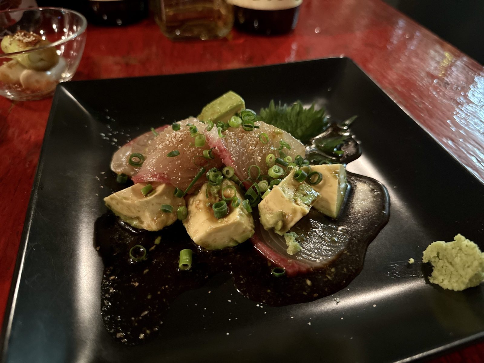 「青年酒場」というお店で、いわゆる大分の名物「りゅうきゅう」「とり天」などの料理が美味しいし、酒の肴のセンスがいいんです。ここの店主も素敵なひとでもう長年好きで通っているお店。わー、今日も楽しみ。