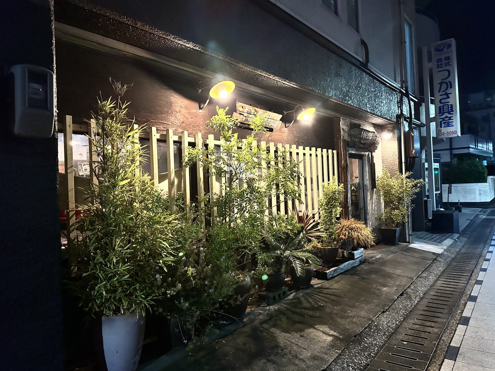 15分くらい歩いて大分の歓楽街の中にある地鶏屋さんに向かう。何回かひとりでカウンターに座ったことがあるし、美味しいし。