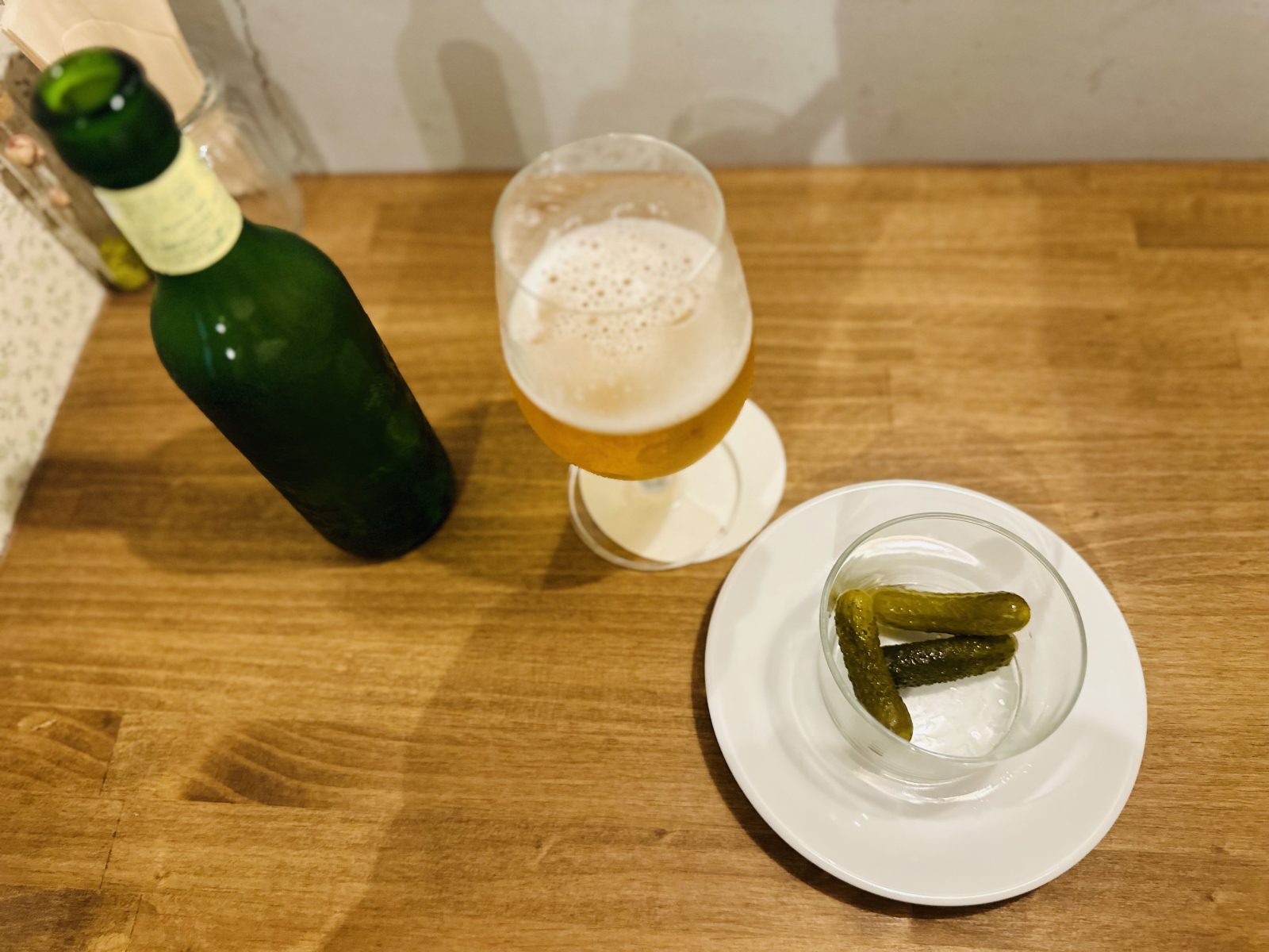 「いつもこのひとコーヒーしか頼まんのに、なんかあったのかな」と店主に思われてるかもしれないので、念のため今日のコンセプトを伝え、ビールとおつまみを注文(おれ、なんか生きづらい)。