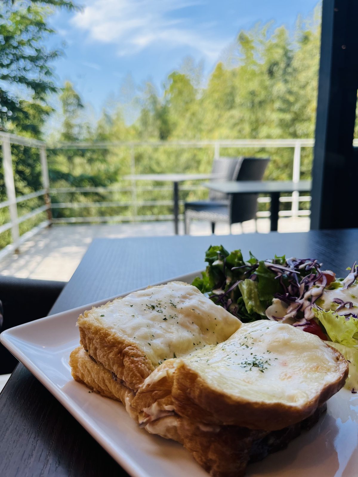 朝からクロックムッシュを食べながら、結局朝か昼かティータイムなのか