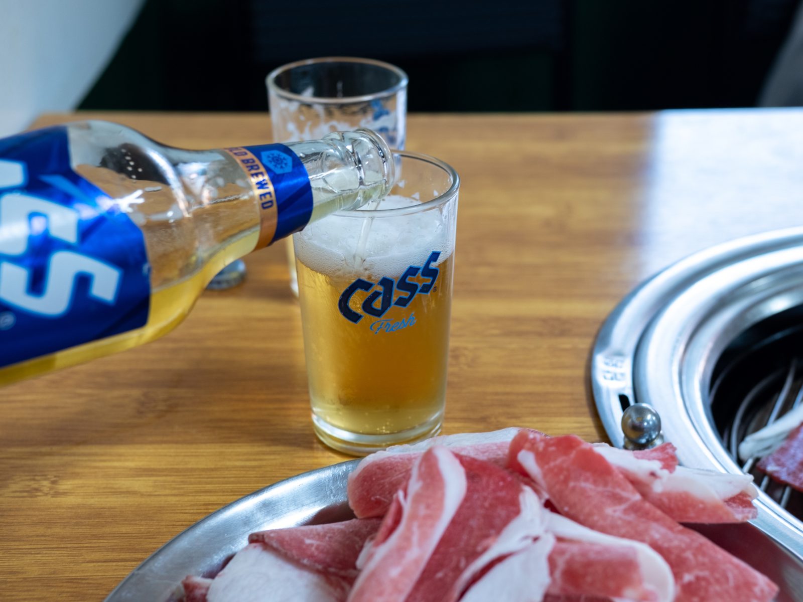 何度も韓国を訪れていても、食べたことのないものはもちろんまだまだたくさんある。チャドルバギもそんな中のひとつでした。차돌(チャドル)は漢字で石英、박이(バギ)は박다(パクタ)=差し込むという意味の動詞の名詞形。牛の第1~7肋骨あたりの部位のことで、日本だと「ともばら肉」と呼ばれるそうです。脂が多く、薄くスライスした状態で運ばれてくるのが一般的な提供の仕方。