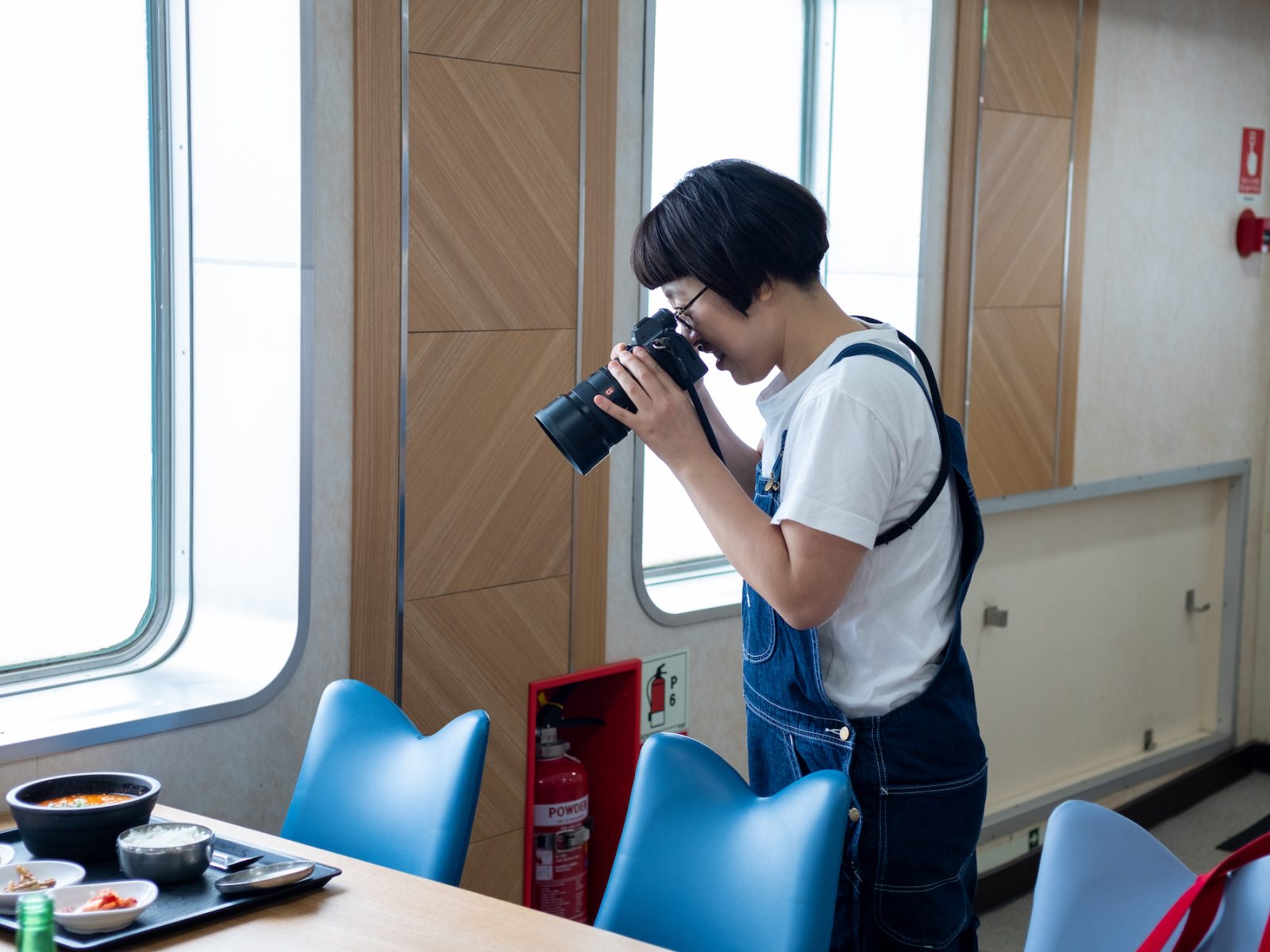 食堂でごはんを食べて、全羅南道に浮かぶたくさんの島を見ていたらあっという間に済州島に到着。電車やバスと違って、われらが船内を自由に歩き回っている間も、船は移動をしてくれている。マッサージチェアに座って英語の本を読む人。朝からビールのロング缶がどんどん開いていくテーブルも。隣の席のアジュンマからは、おいしそうなキムチを山盛りお裾分けしてもらったり。これからチェジュにキャンプに行くというアジョシは、熱心に島の名前を説明してくれたり。