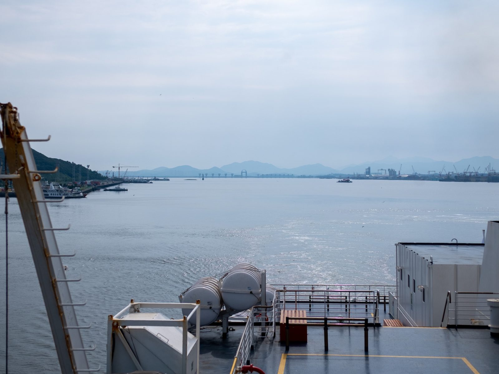 4時間半の船の旅は、思っていたよりもずっと快適。エコノミーのチケットは片道32,300ウォン。本日のレートで3547円。船の中には食堂やコンビニ、小さなゲームセンターもあって子供たちで賑わっています。エコノミーの船室は10数人が雑魚寝をするスタイルで、私たちが到着した時には、すでに毛布をかぶってお休みをしている方もいました。
