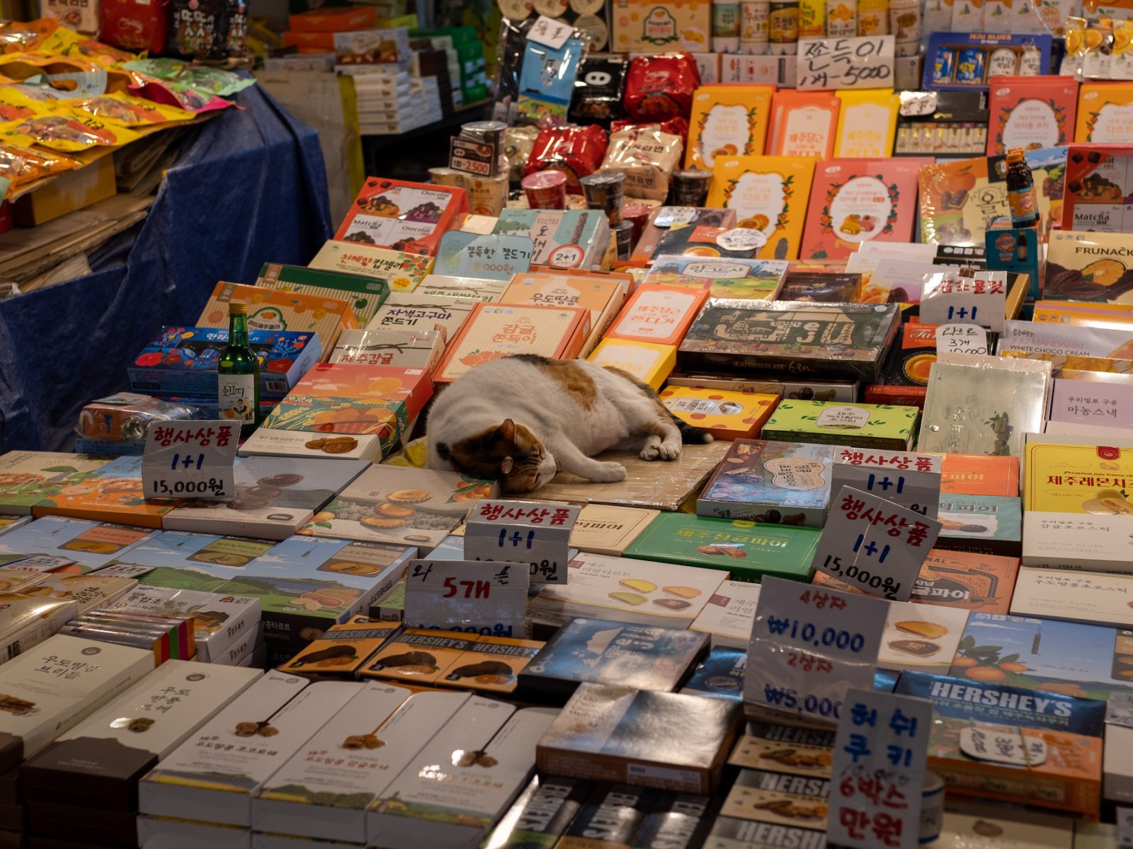 短い滞在時間、まず目指したのは済州で一番大きな「済州東門市場」。フェリー乗り場からも近く、タクシーで10分ほど。ゲートには1、2、3、4と番号がふられているので、各々買い物をして、あとで合流する際の待ち合わせもしやすい。