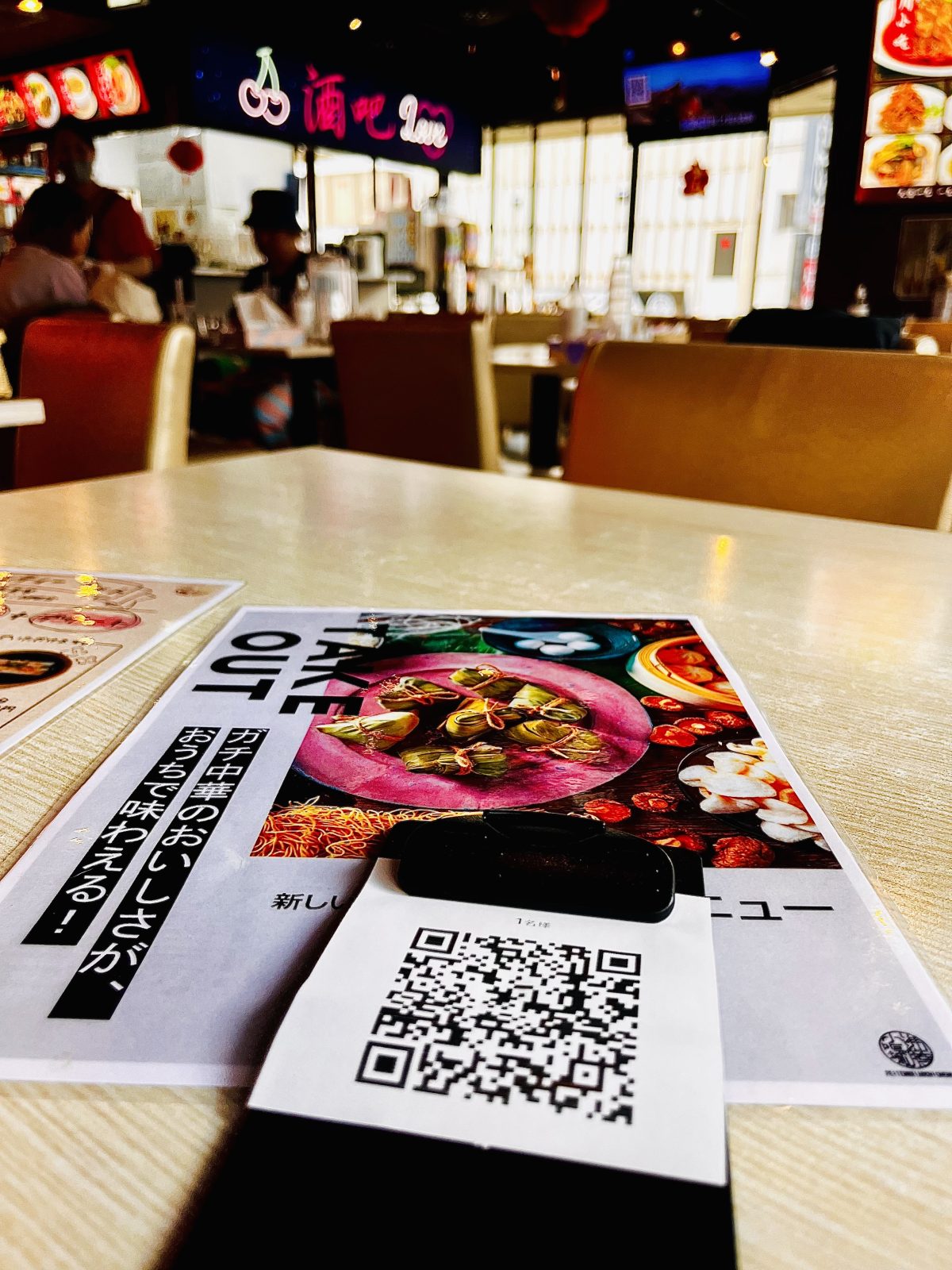 席に座ると「ハイ」と渡されるこのQRコード、そうだこれがメニューだ!