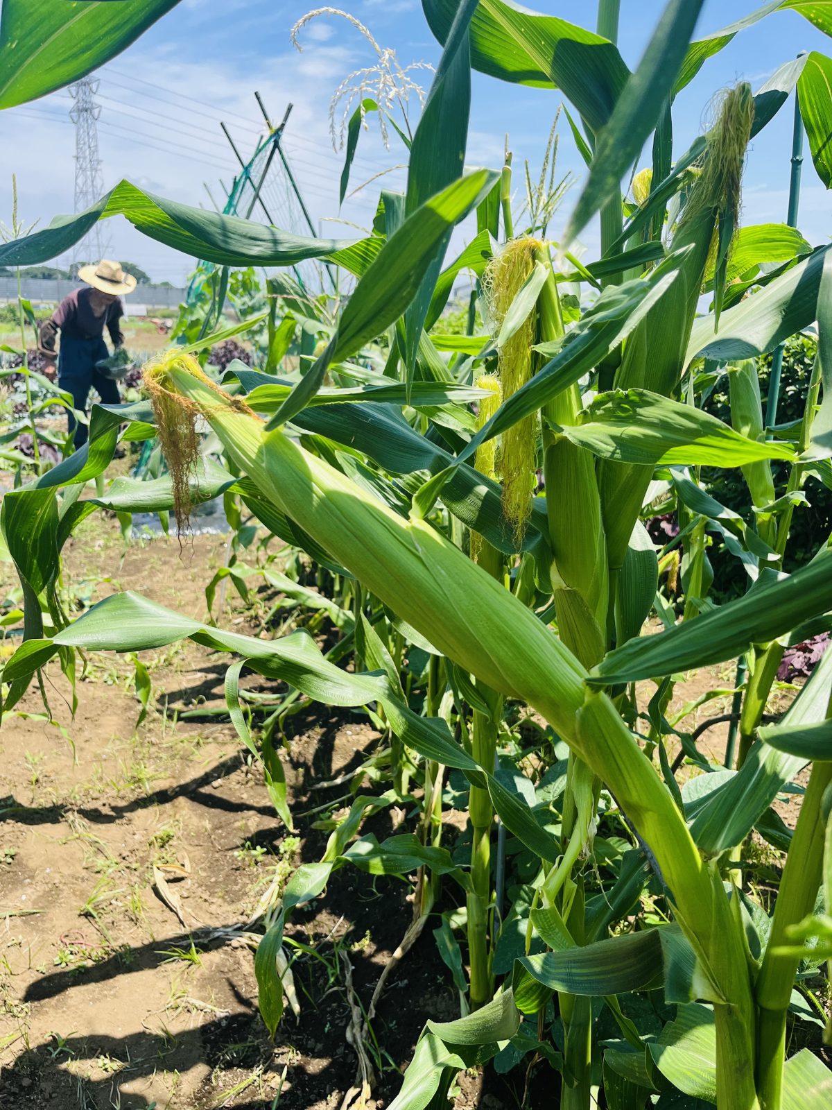 あついので、トウモロコシの影に隠れたりする。となりのトトロでしかトウモロコシ畑を