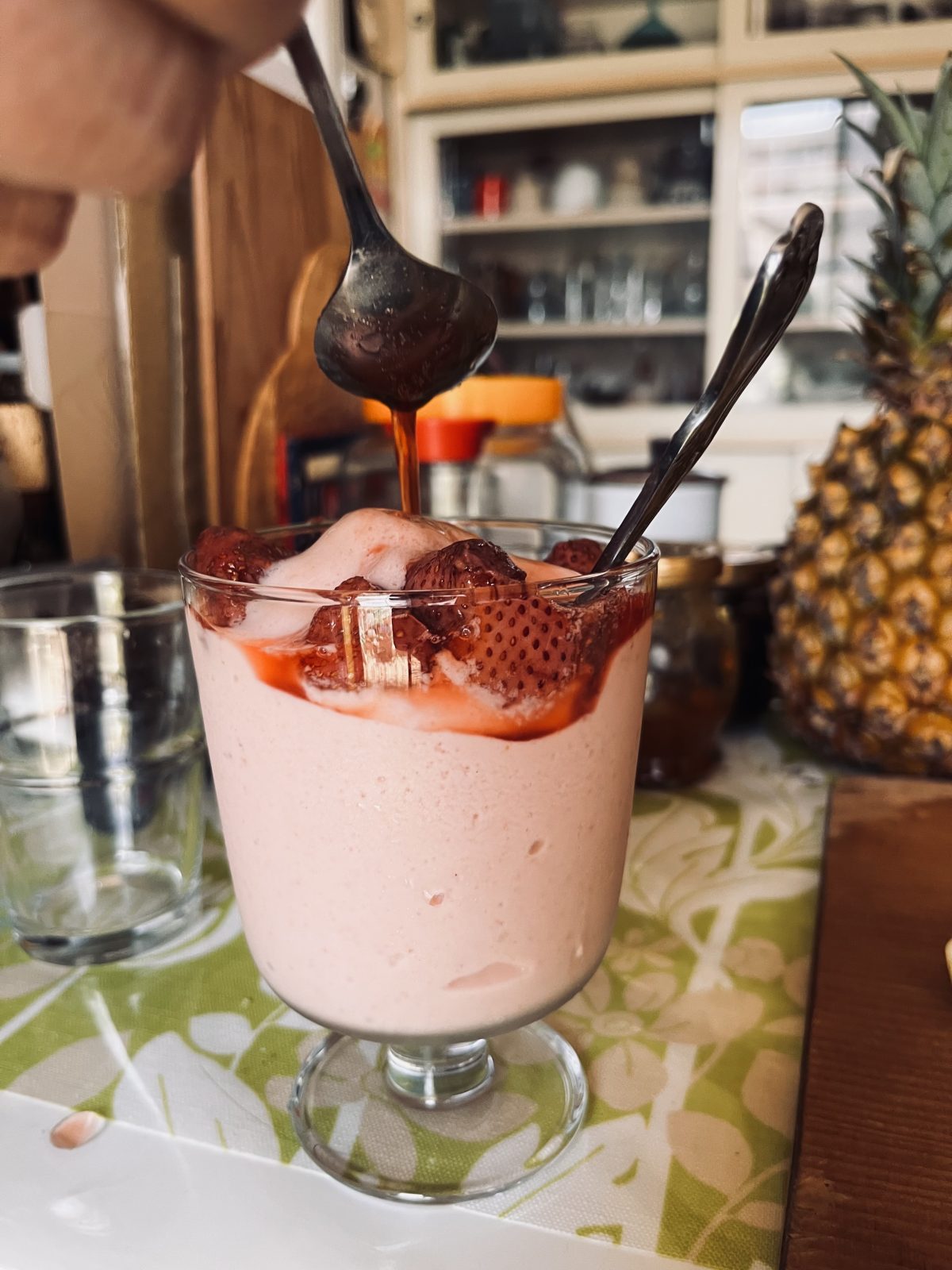 ちなみに山ほどあるイチゴは冷凍していて、家にいるみづほさんがフラペチーノをつくってくれた。