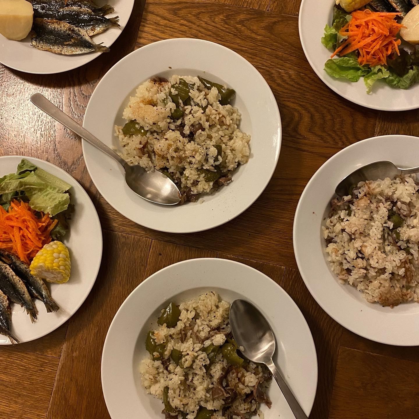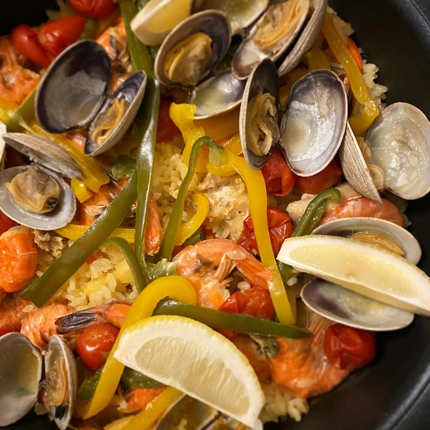パエリア(というか海鮮炊き込みごはん)で全員お米食べ過ぎた…