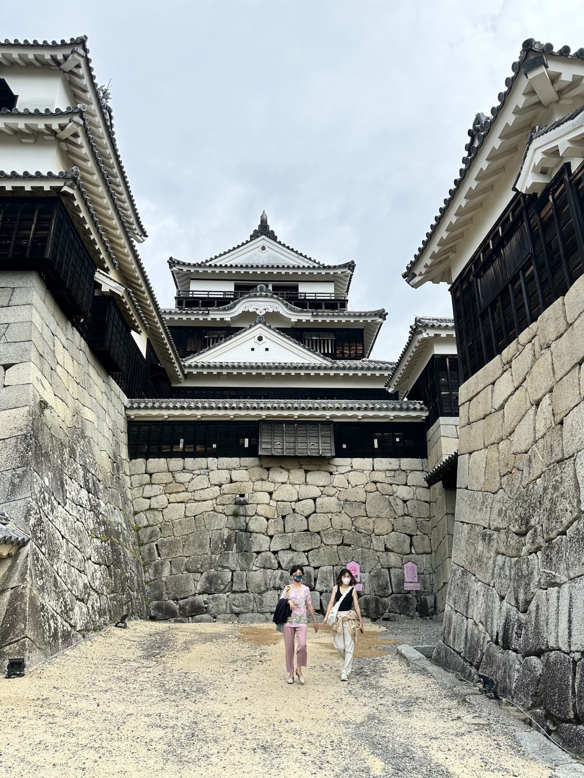 わー、これは、かっこいいお城だ。朝からとても暑い日でしたが天守の最上階に吹く風が気持ちよくて、松山の街並みをしばらく眺めていました。