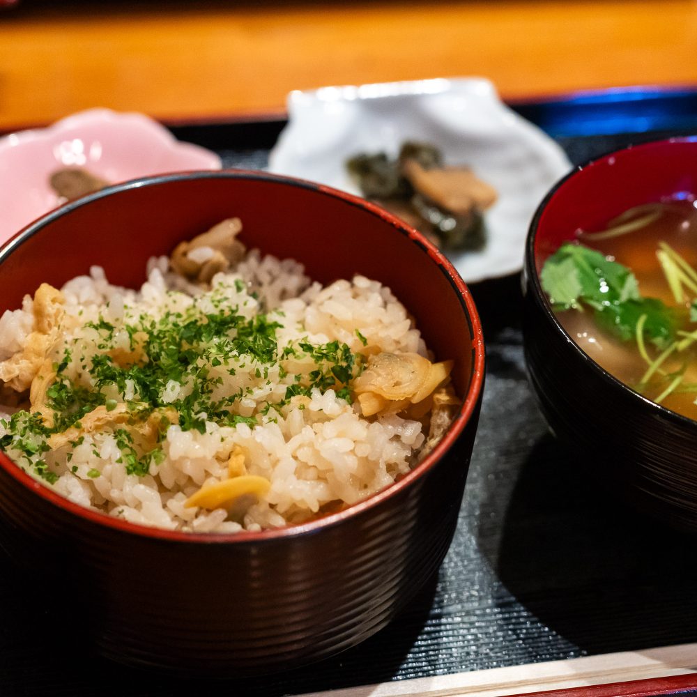 だしと醤油で味付けされたご飯。うーん。美味しい。