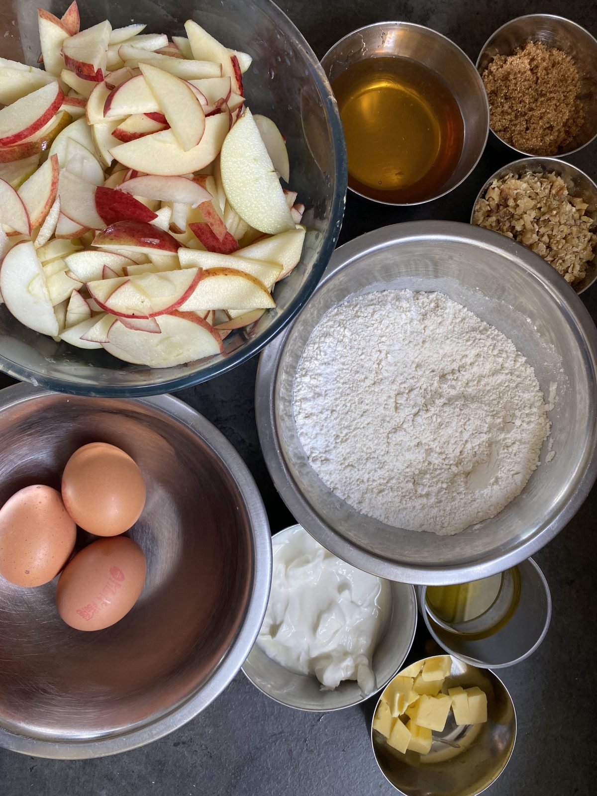 普通のリンゴはヨーグルトとオリーブオイルを使うイタリアンアップルケーキに。