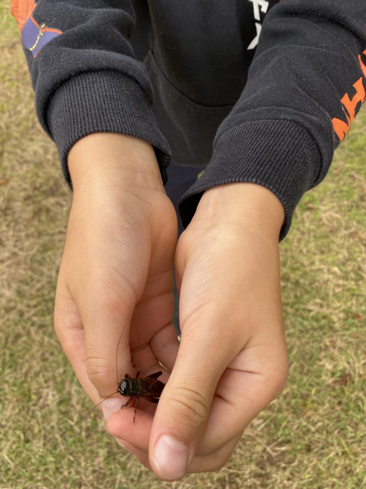 「バッタ捕まえた!」