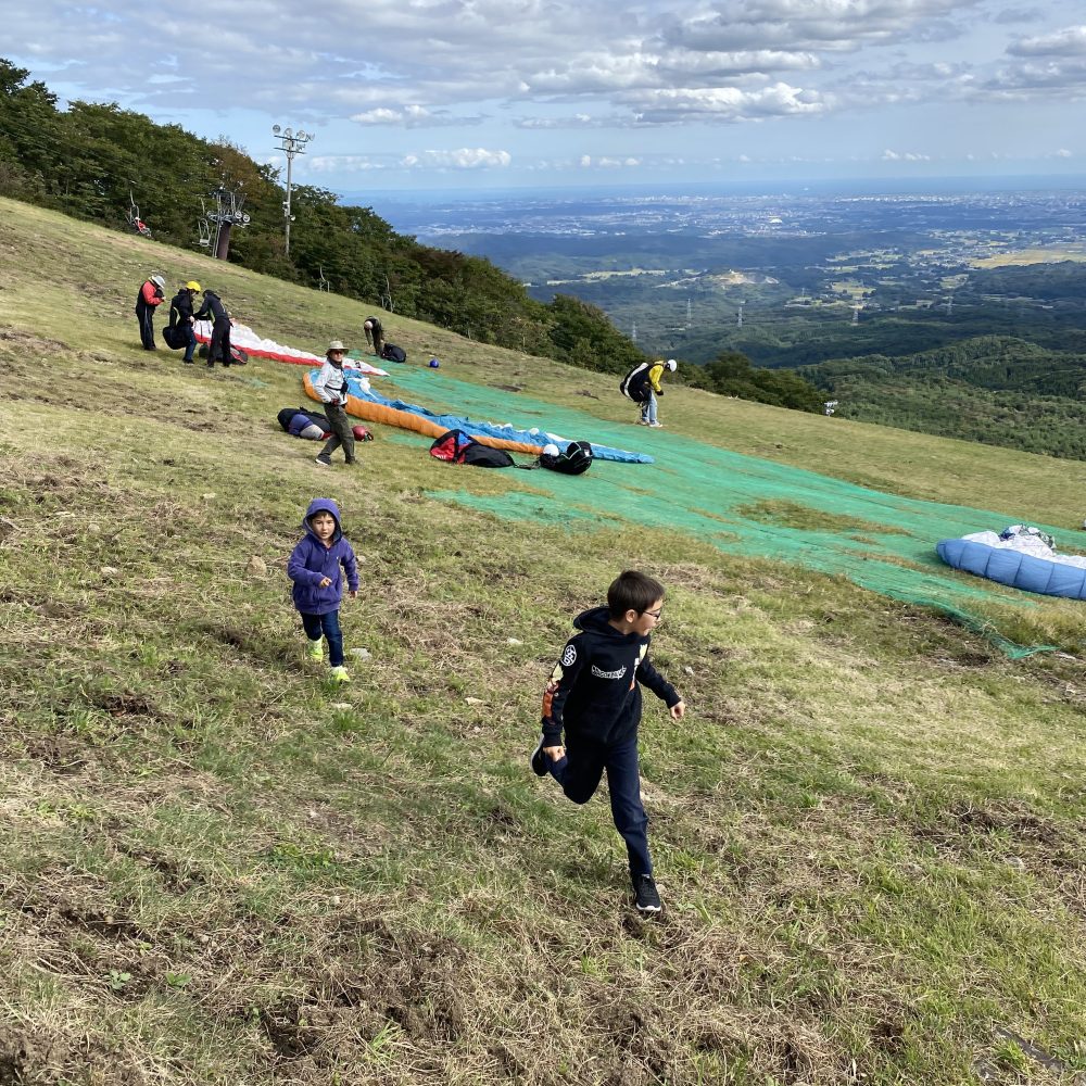 パラグライダーの飛ぶ瞬間も見られて子供達は大満足。